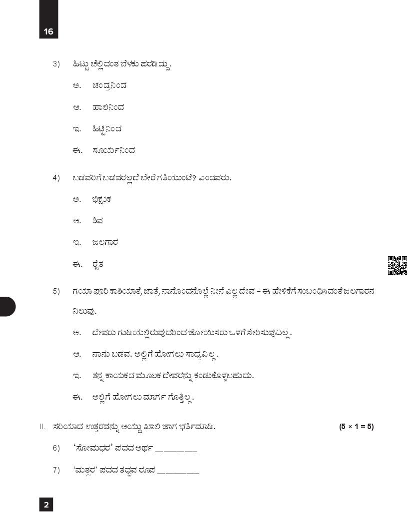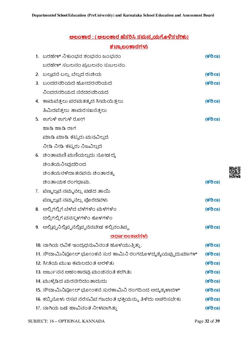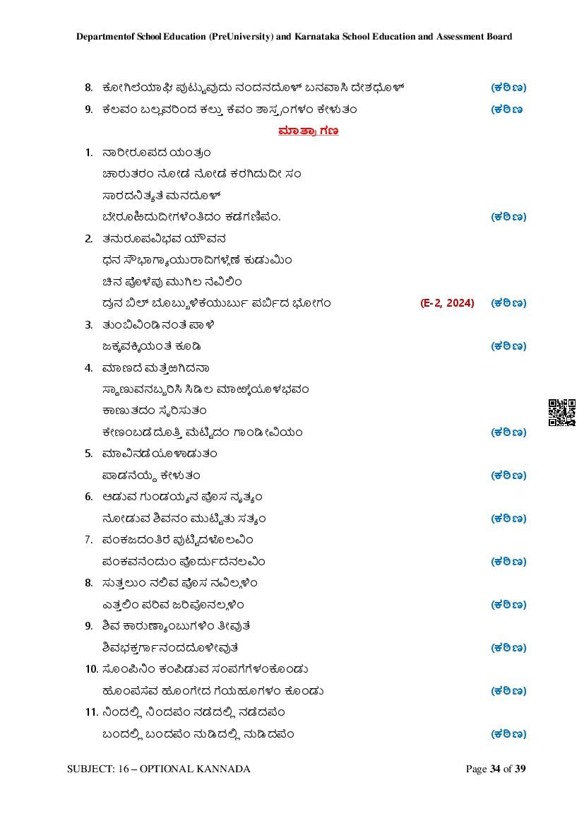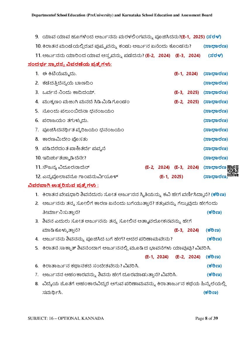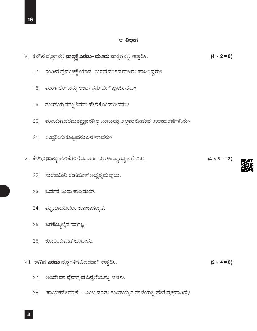 Karnataka 2nd PUC Question Bank for Kannada Optional View Download
