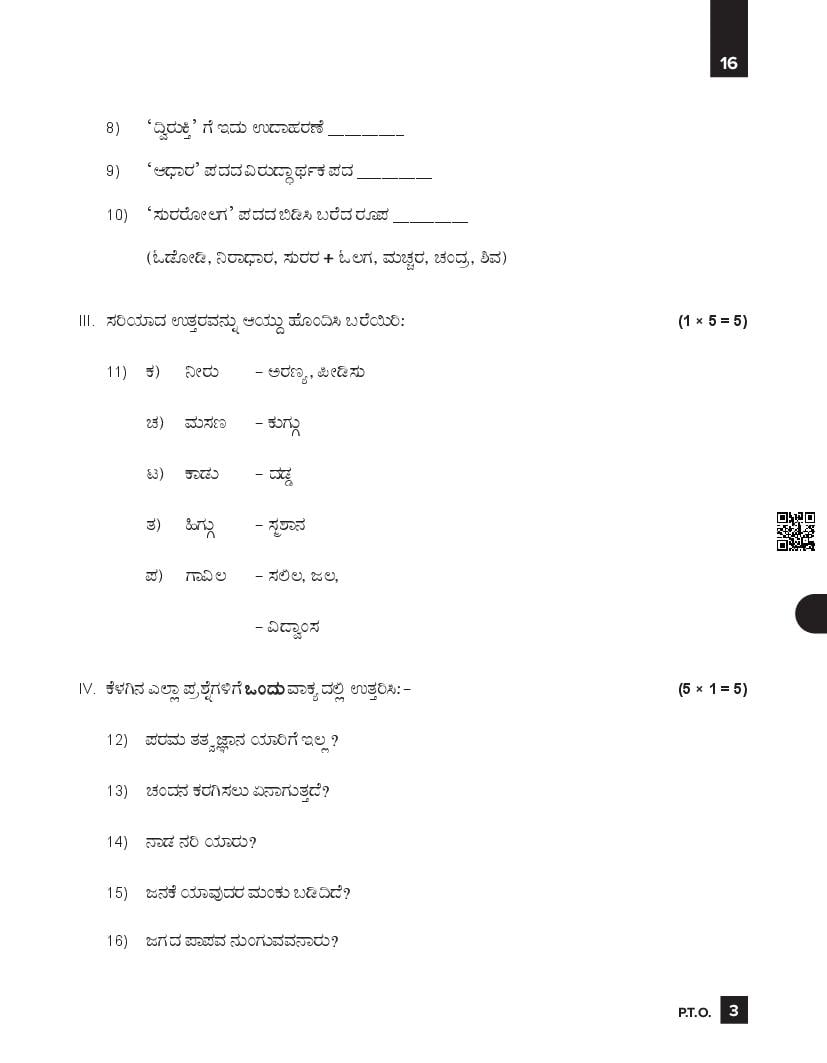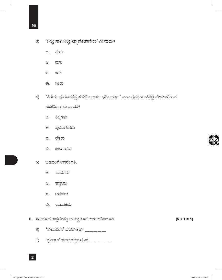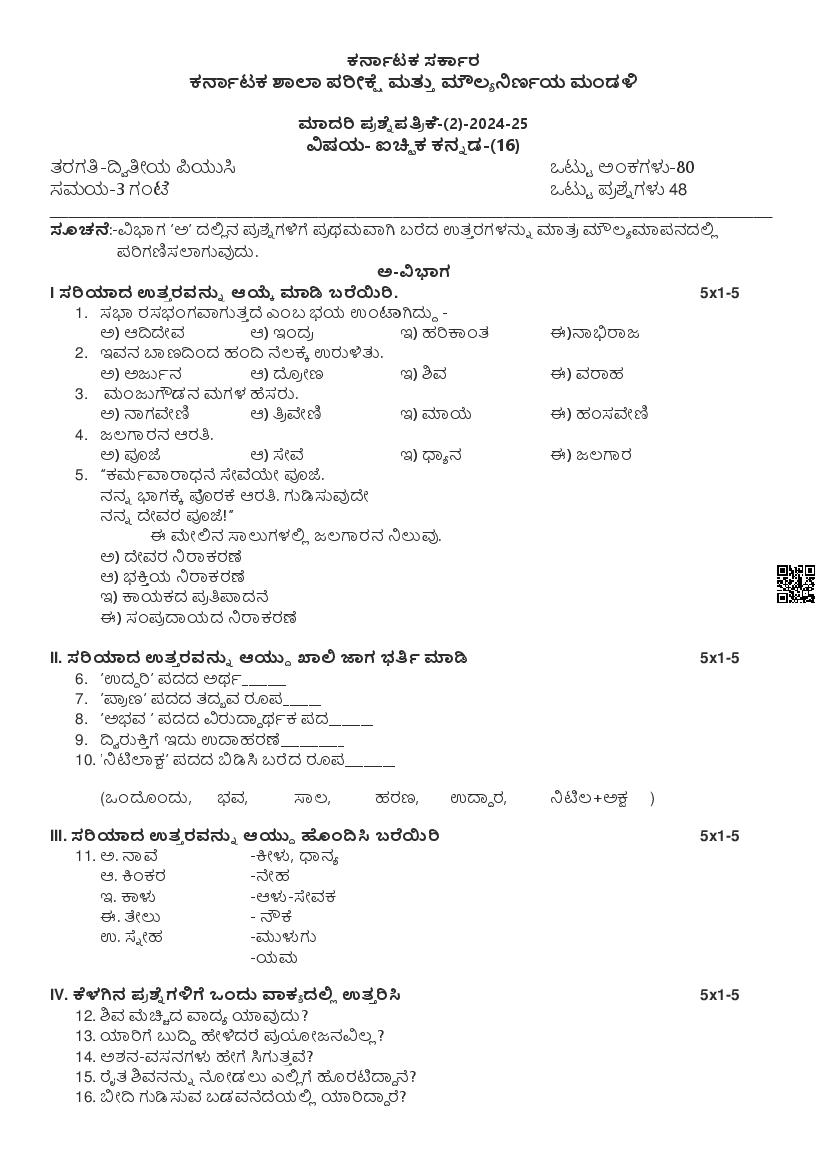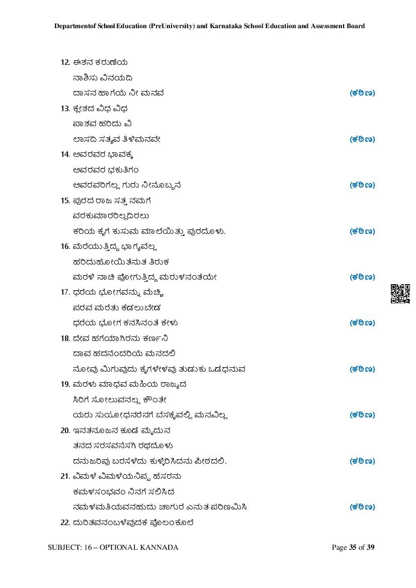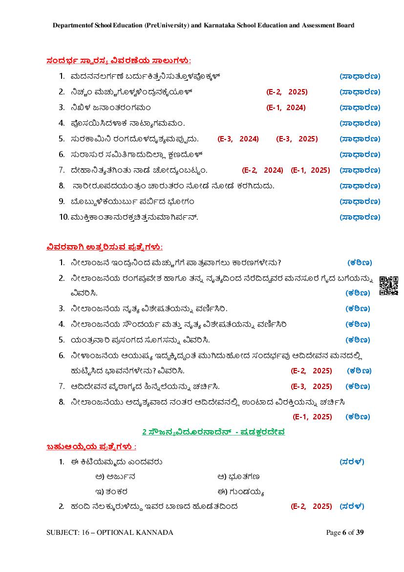Karnataka 2nd PUC Question Bank for Kannada Optional View Download