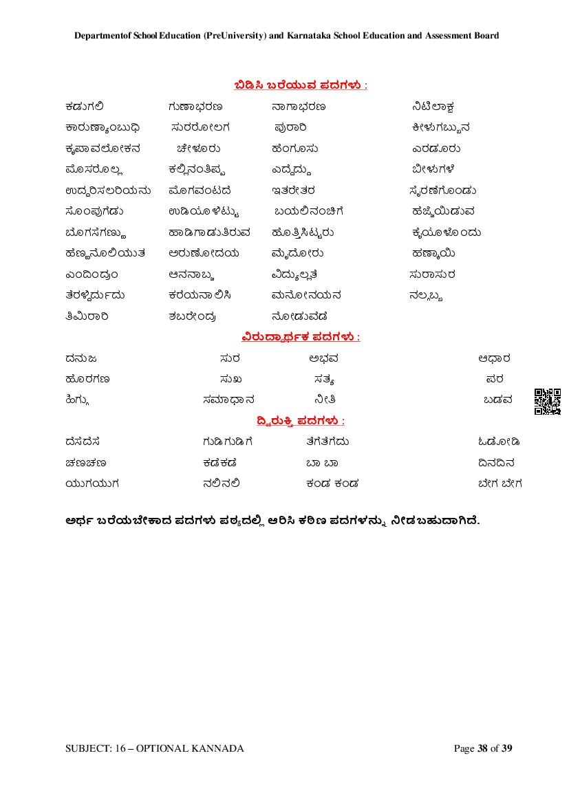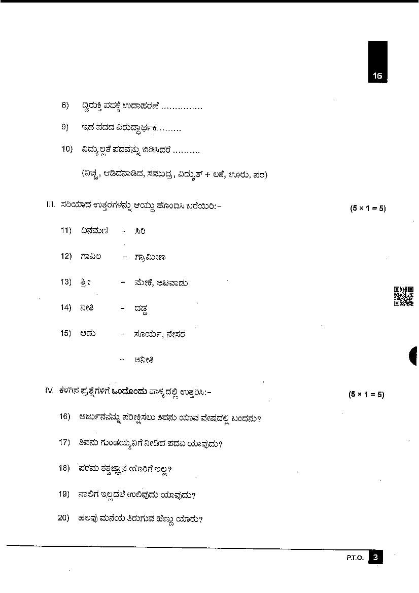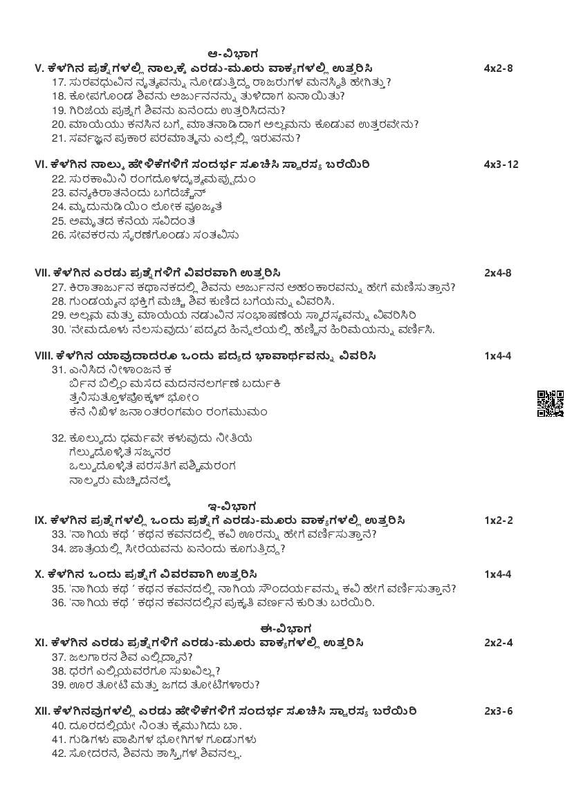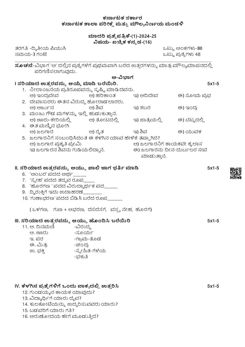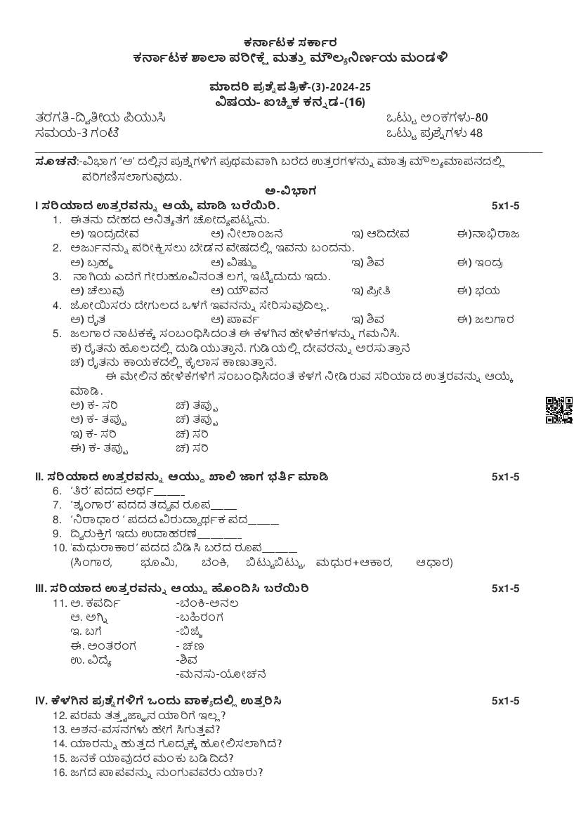 Karnataka 2nd PUC Question Bank for Kannada Optional View Download