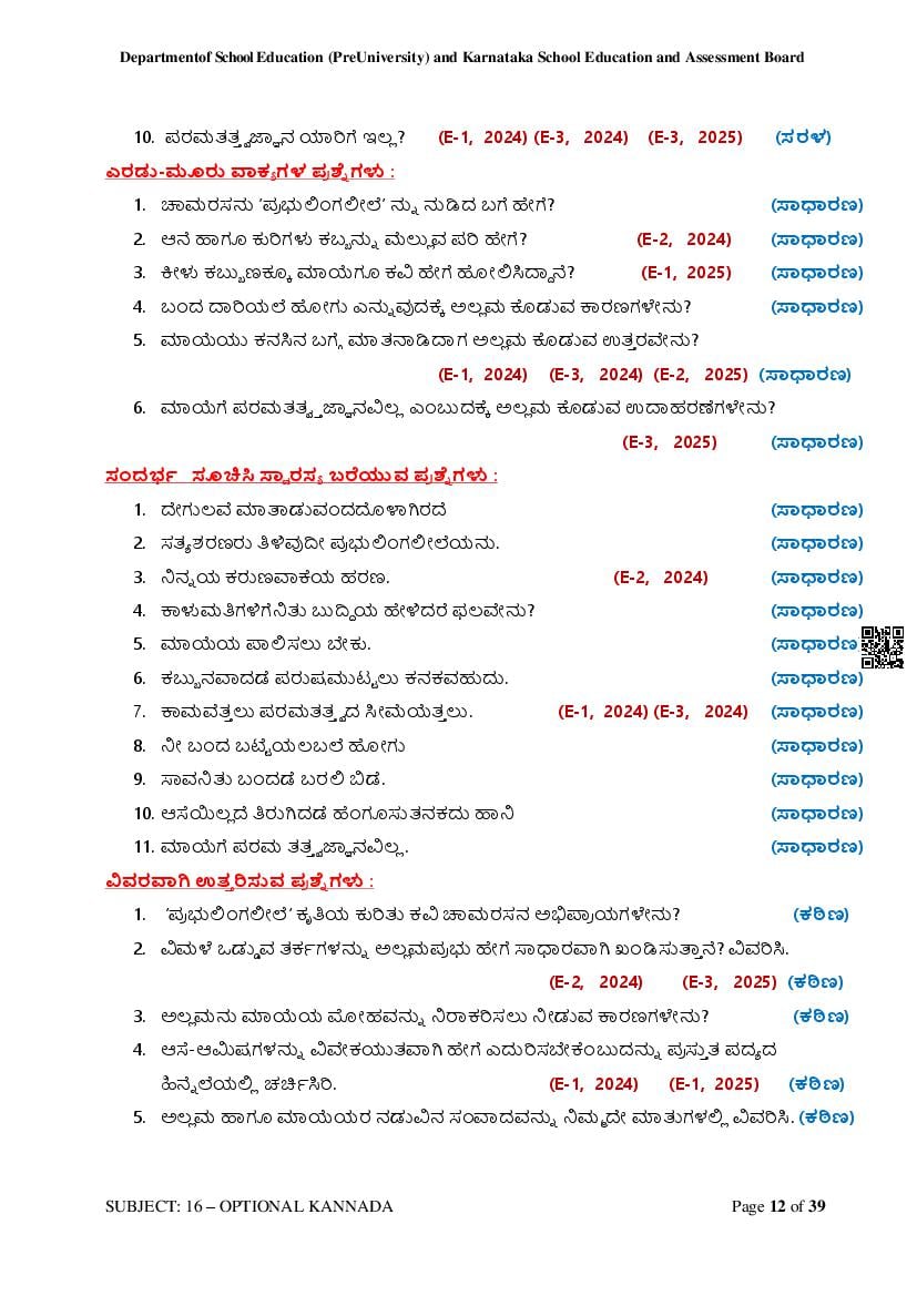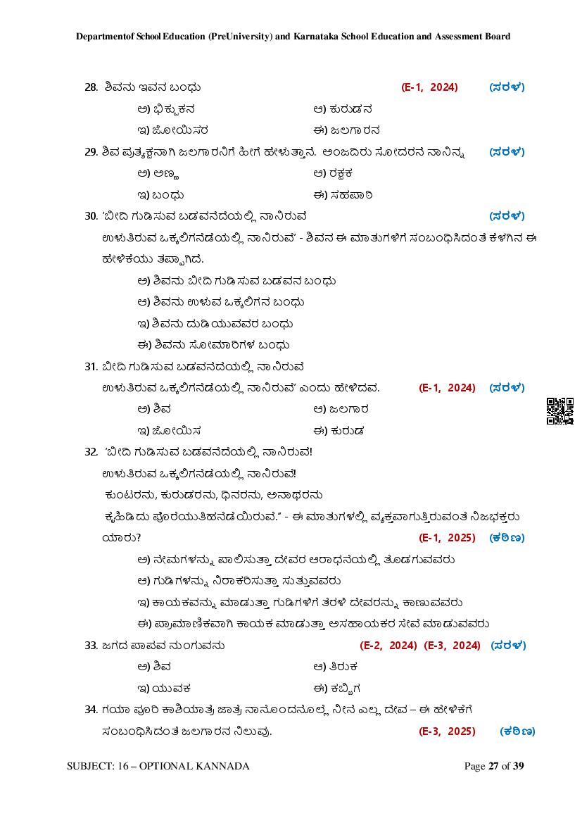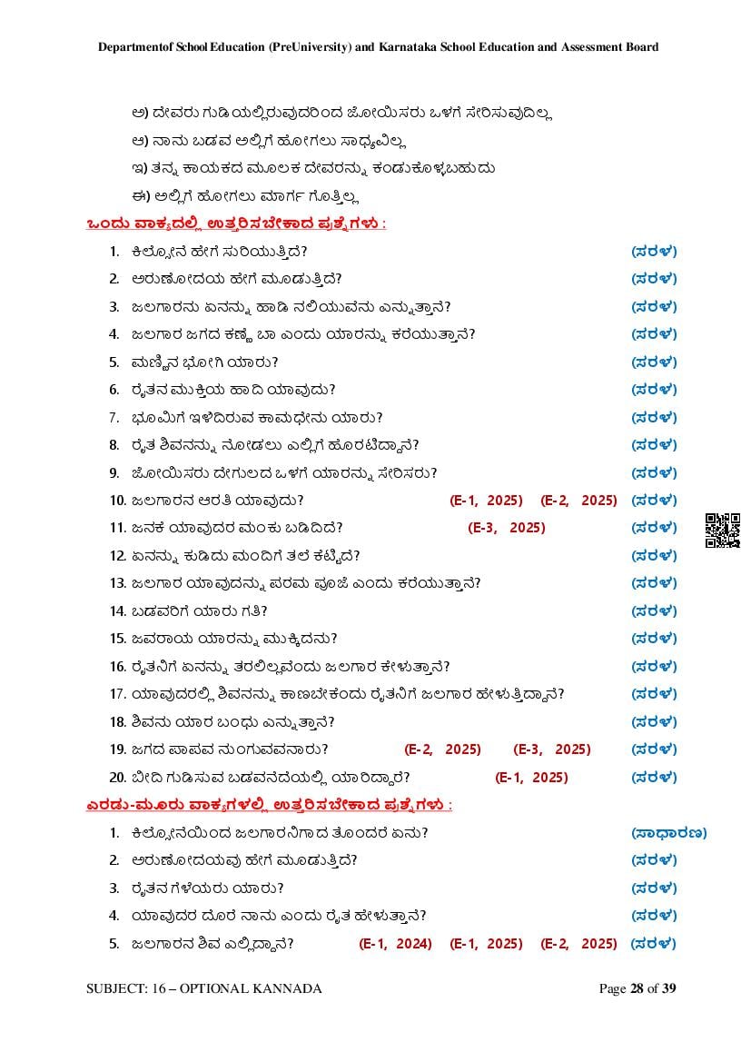 Class 12 Kannada Optional Question Bank Download Link – Click Here to Download Kannada Optional Question Bank PDF