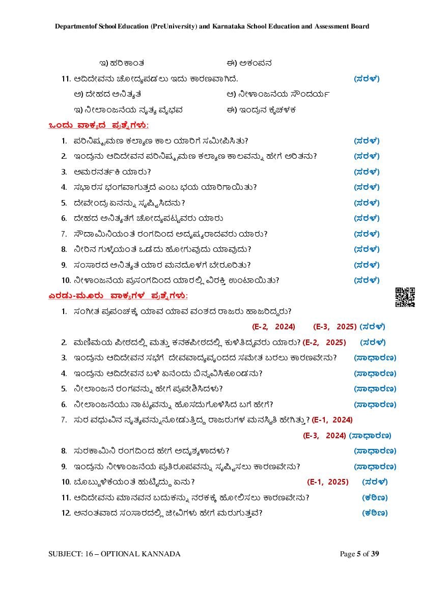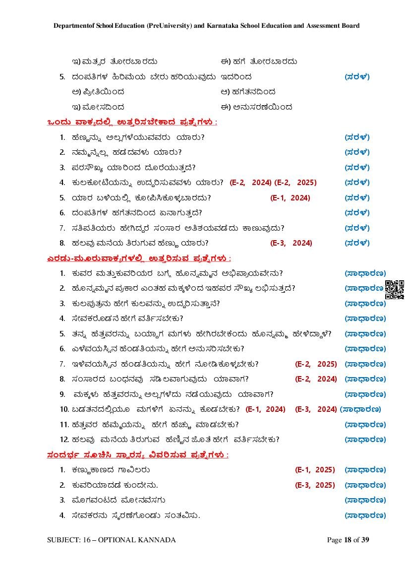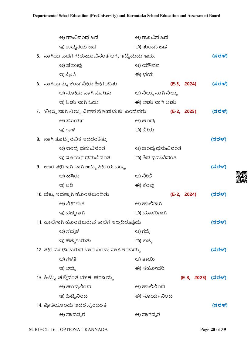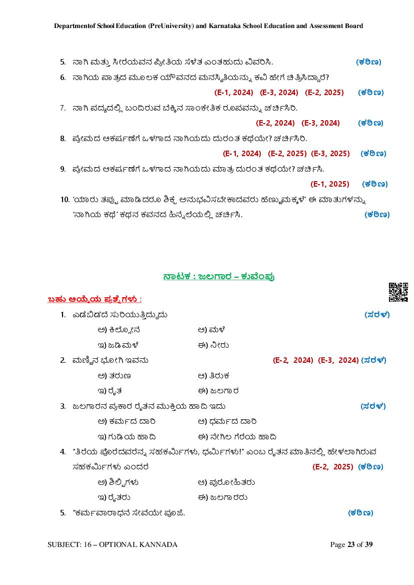 Karnataka 2nd PUC Kannada Optional Question Bank PDF