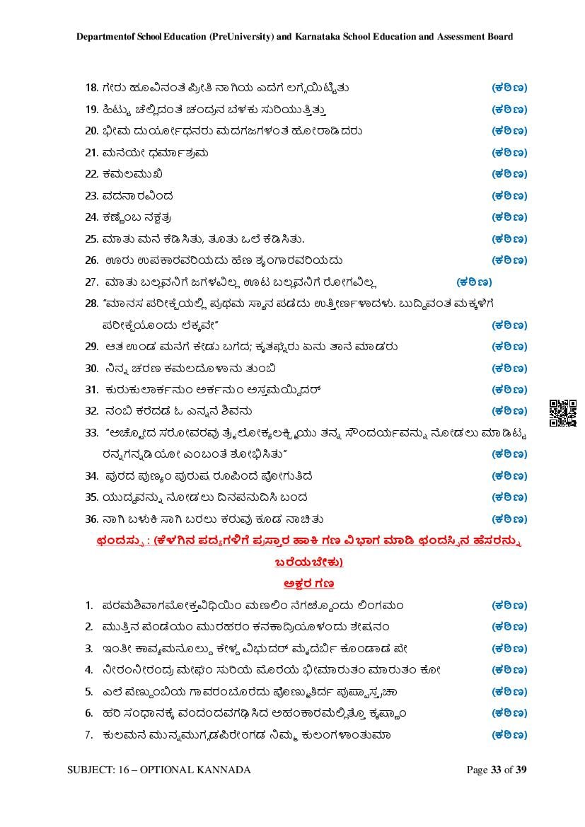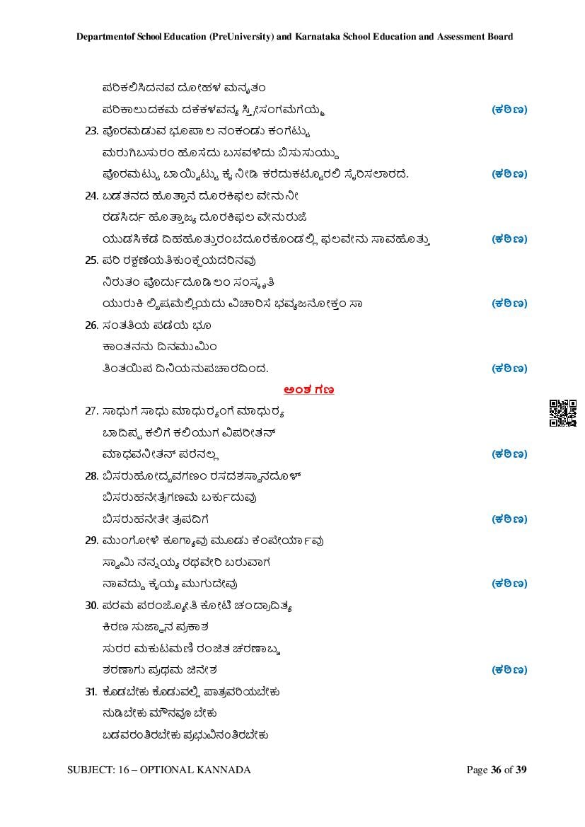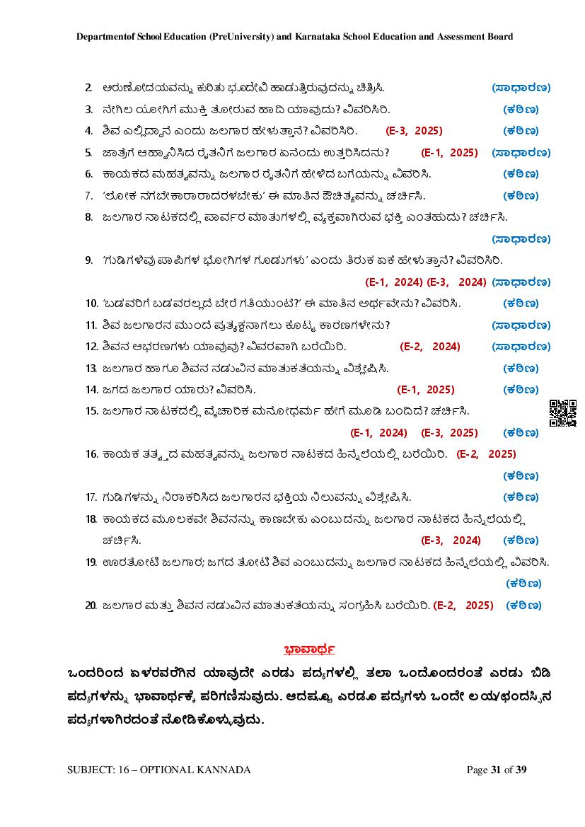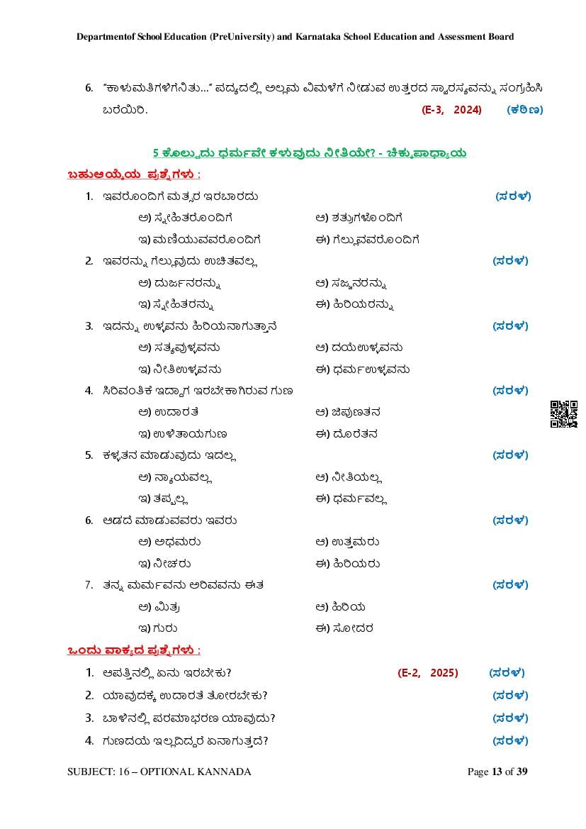 Karnataka 2nd PUC Kannada Optional Question Bank PDF