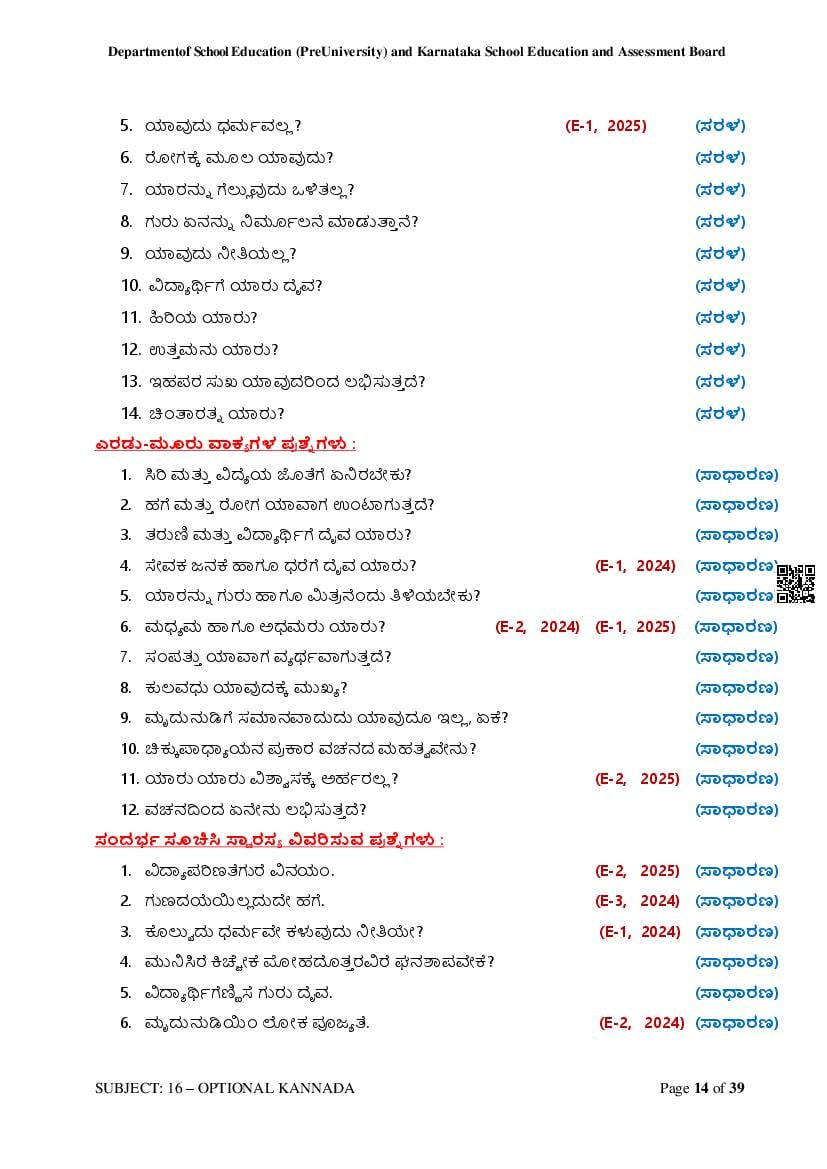 Here are the links for downloading the Kannada Optional Question Bank. Candidates can utilize these karnataka 12 study resources to assess their current performance levels and identify areas for improvement. This will assist students in recognizing their strengths and weaknesses, contributing to more effective learning.