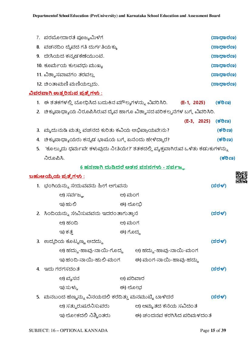 Karnataka State Board II PUC Kannada Optional Question Bank is available for download in PDF format. Simply click the download option to save the file. We recommend that students solve the provided Kannada Optional question bank to improve their exam scores and plan their preparation strategies effectively.