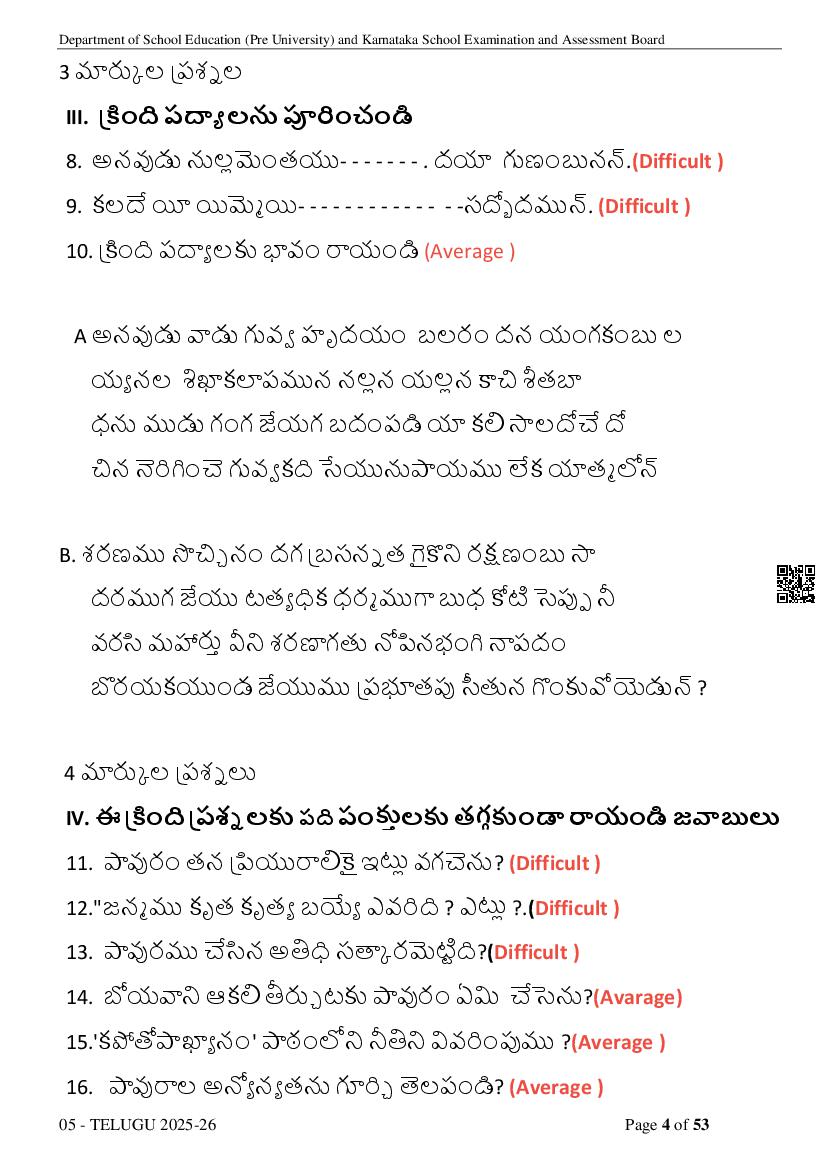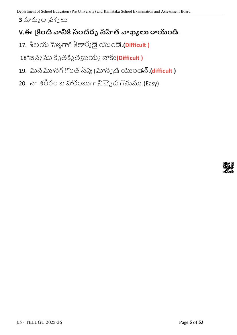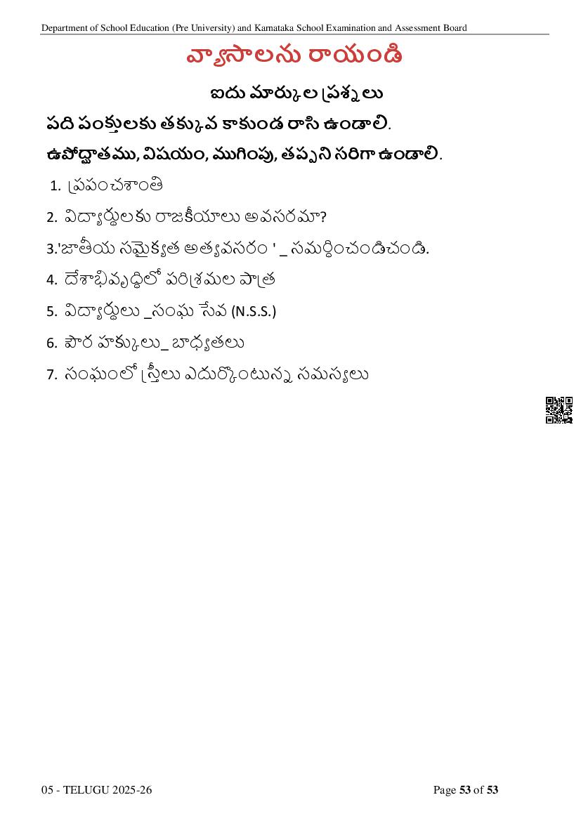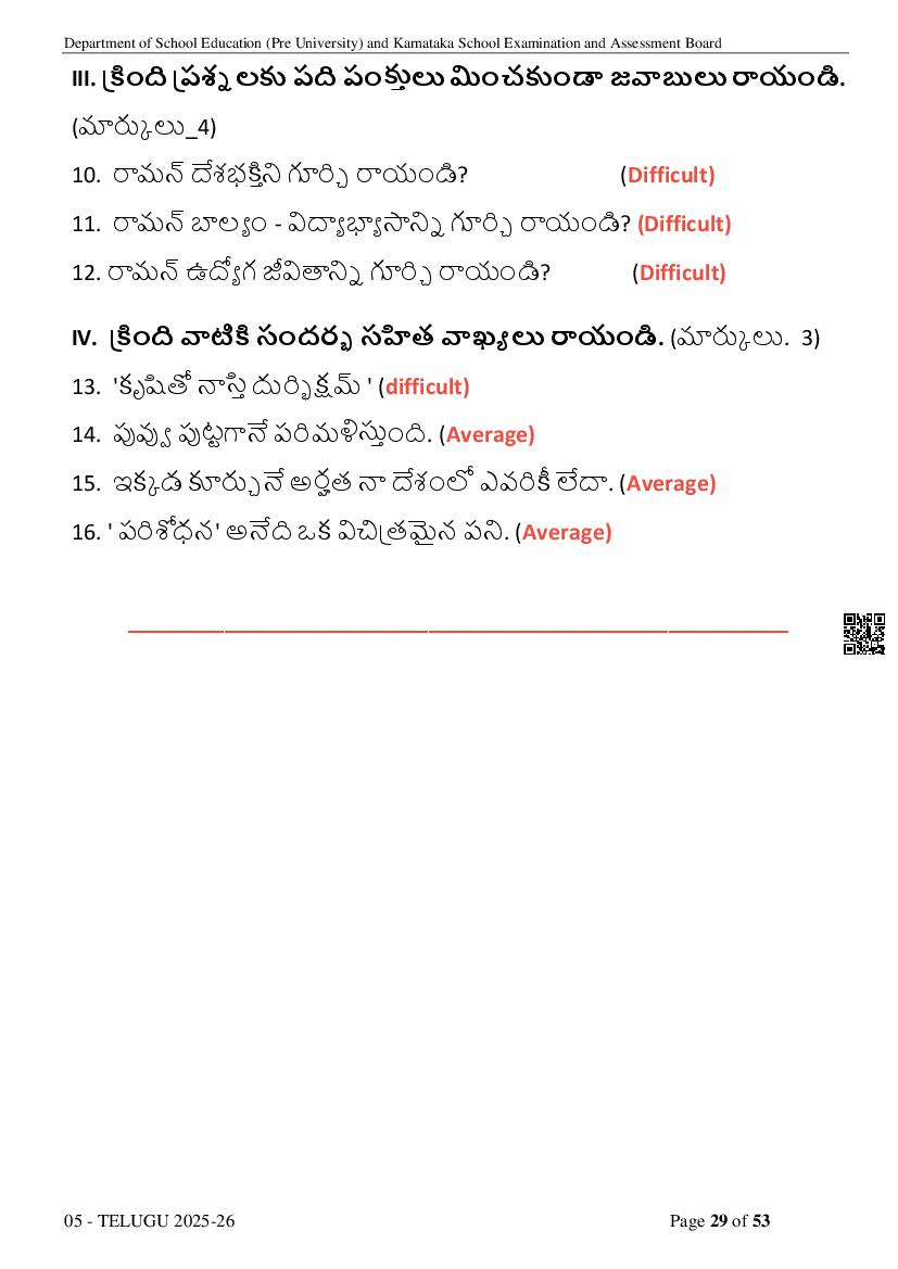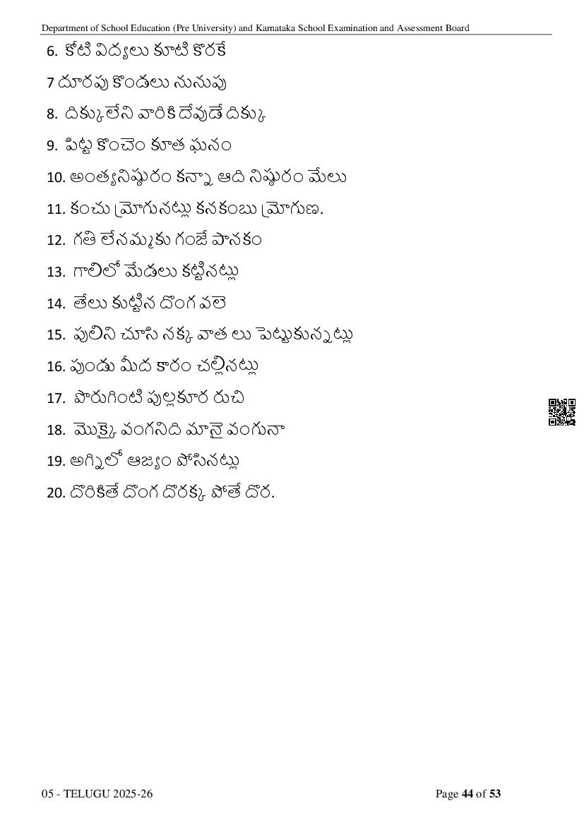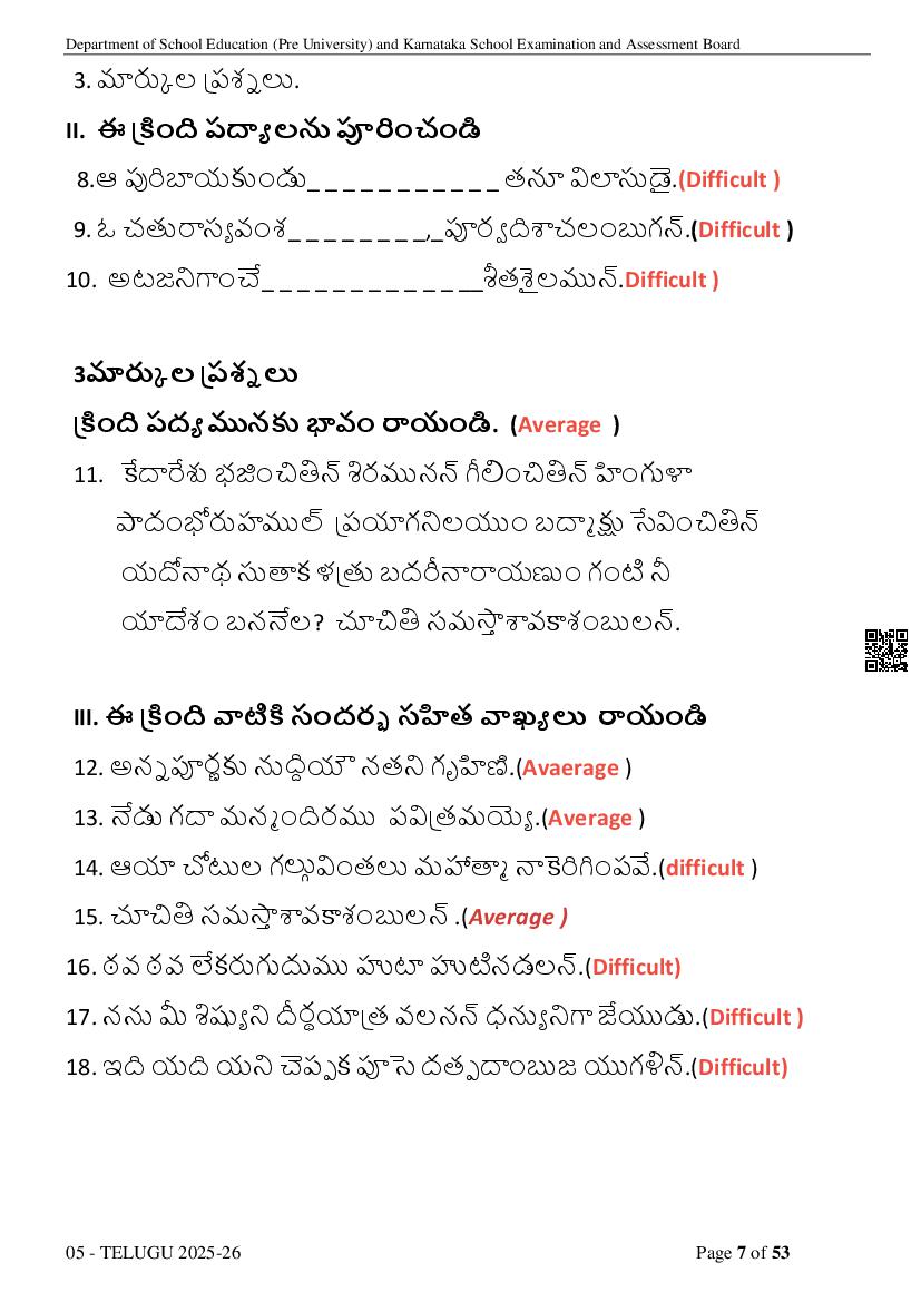 Karnataka 2nd PUC Question Bank for Telugu View Download