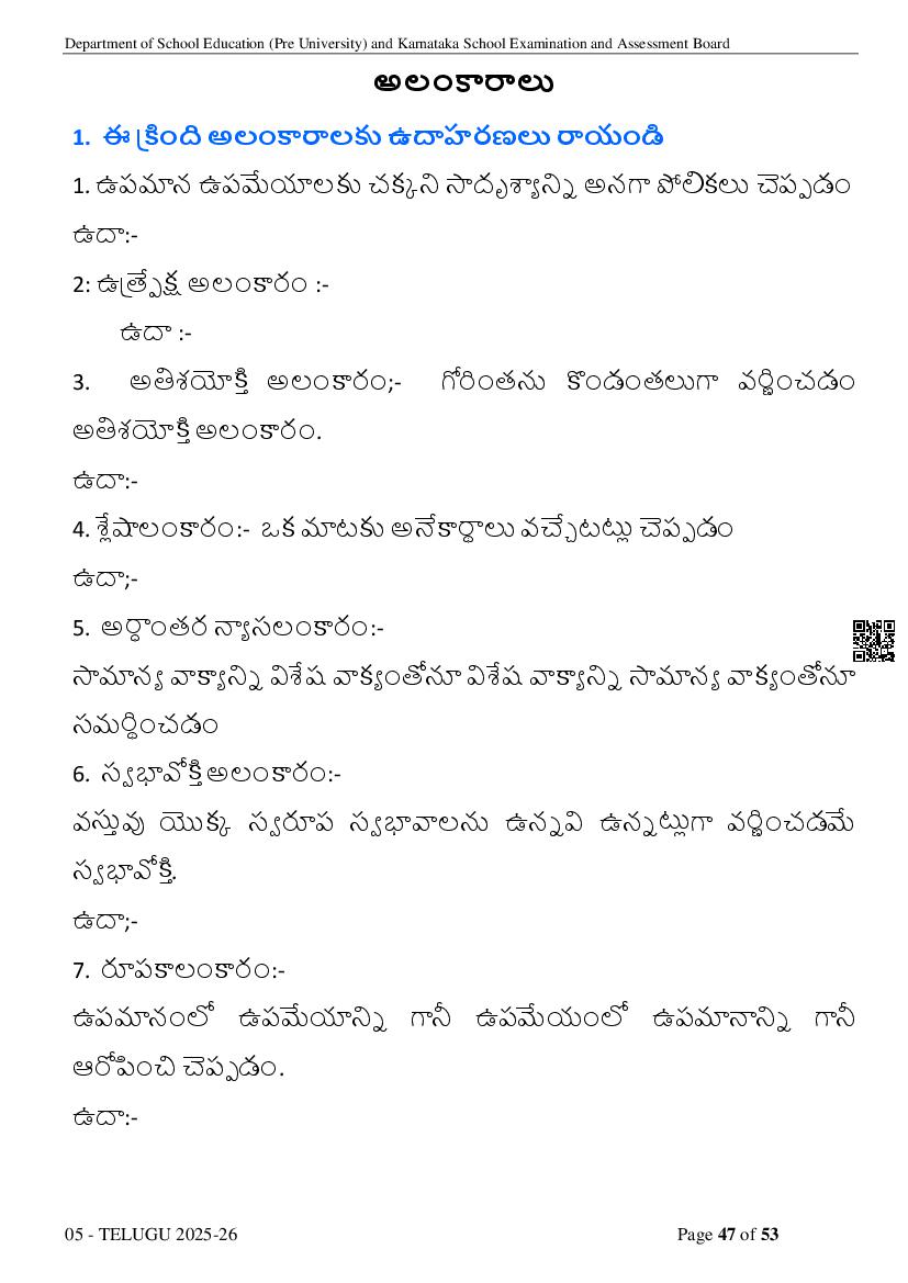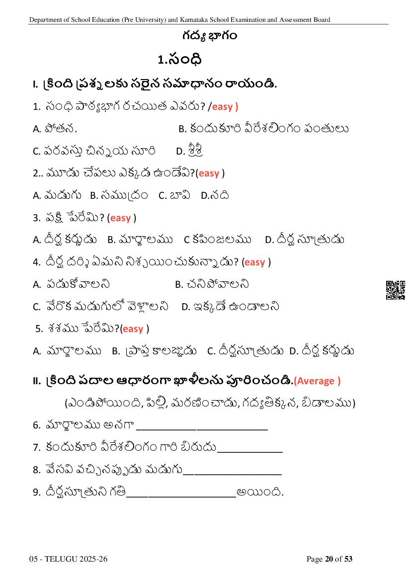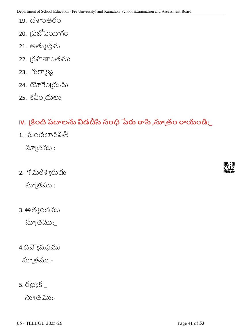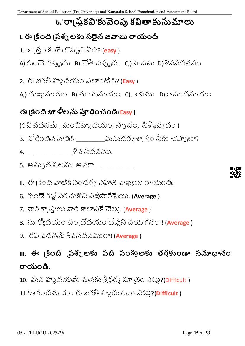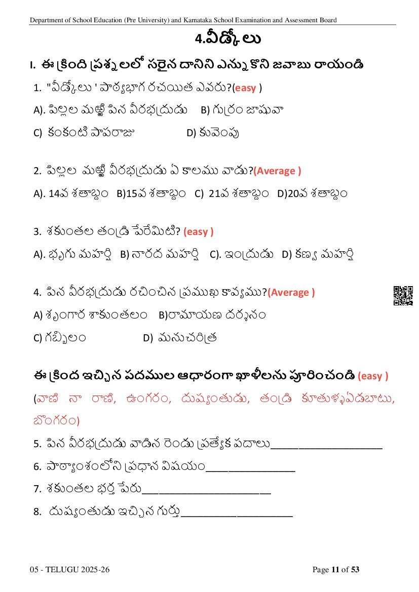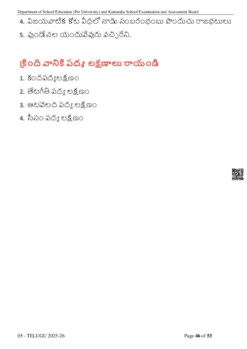 Karnataka 2nd PUC Question Bank for Telugu View Download