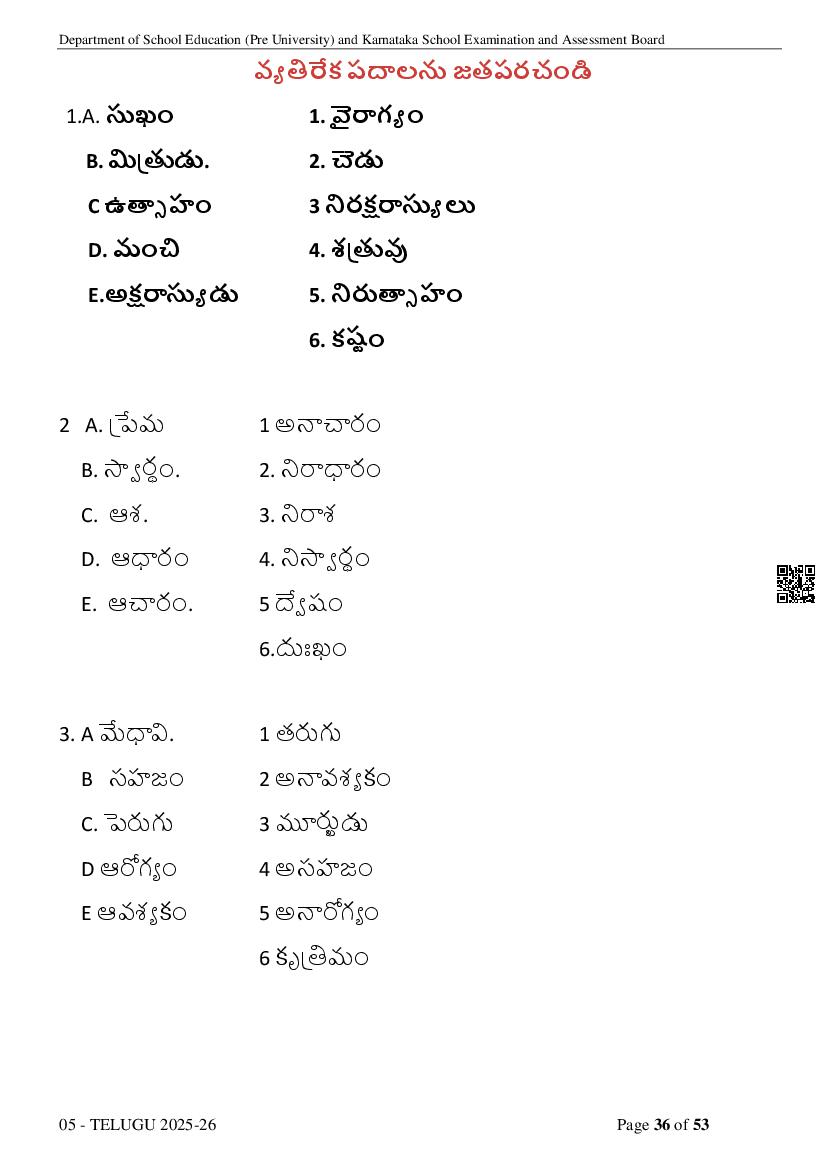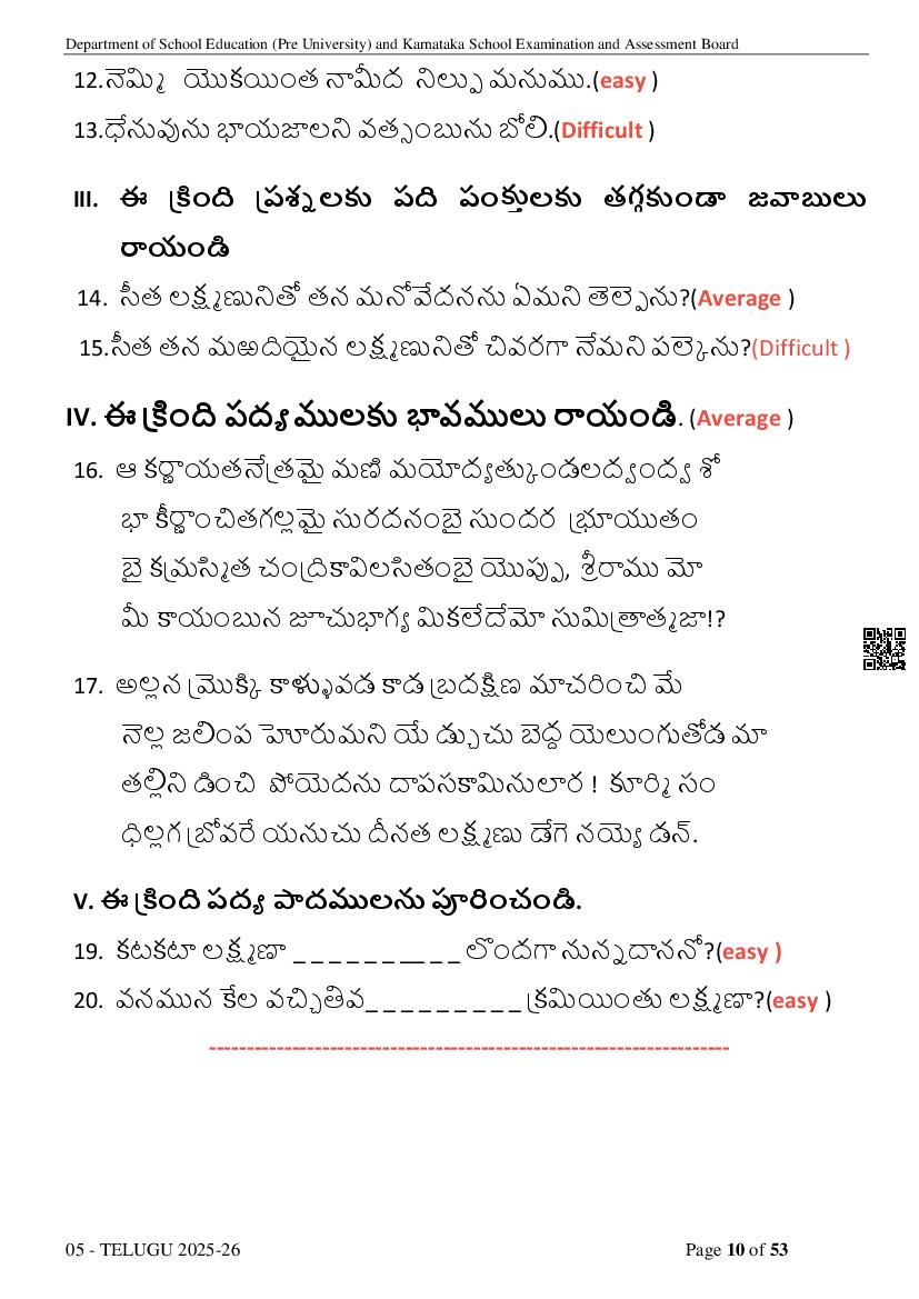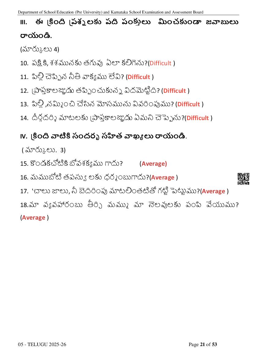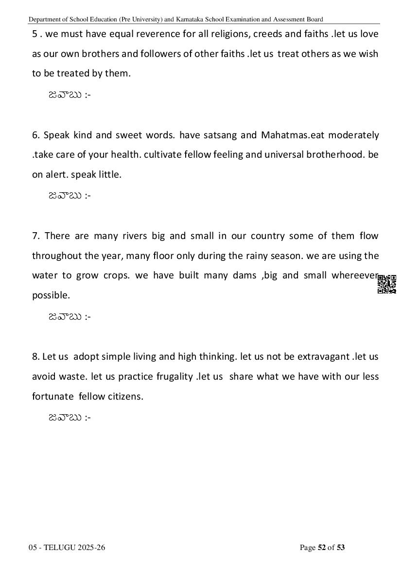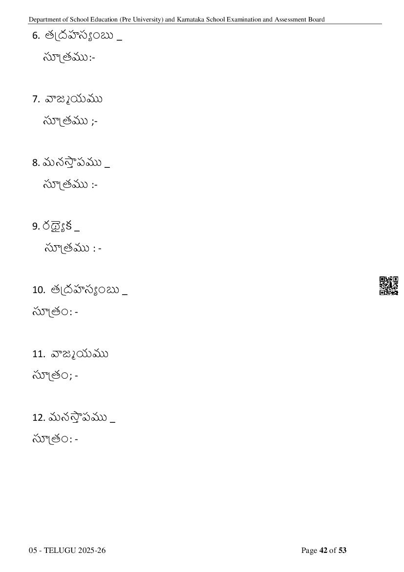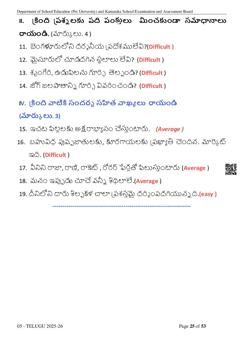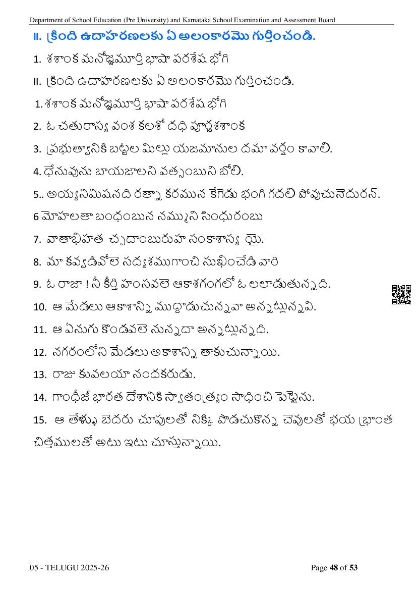 Karnataka 2nd PUC Question Bank for Telugu View Download