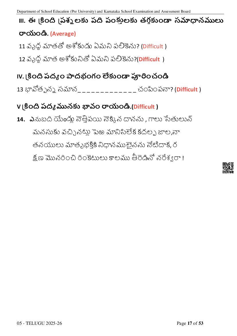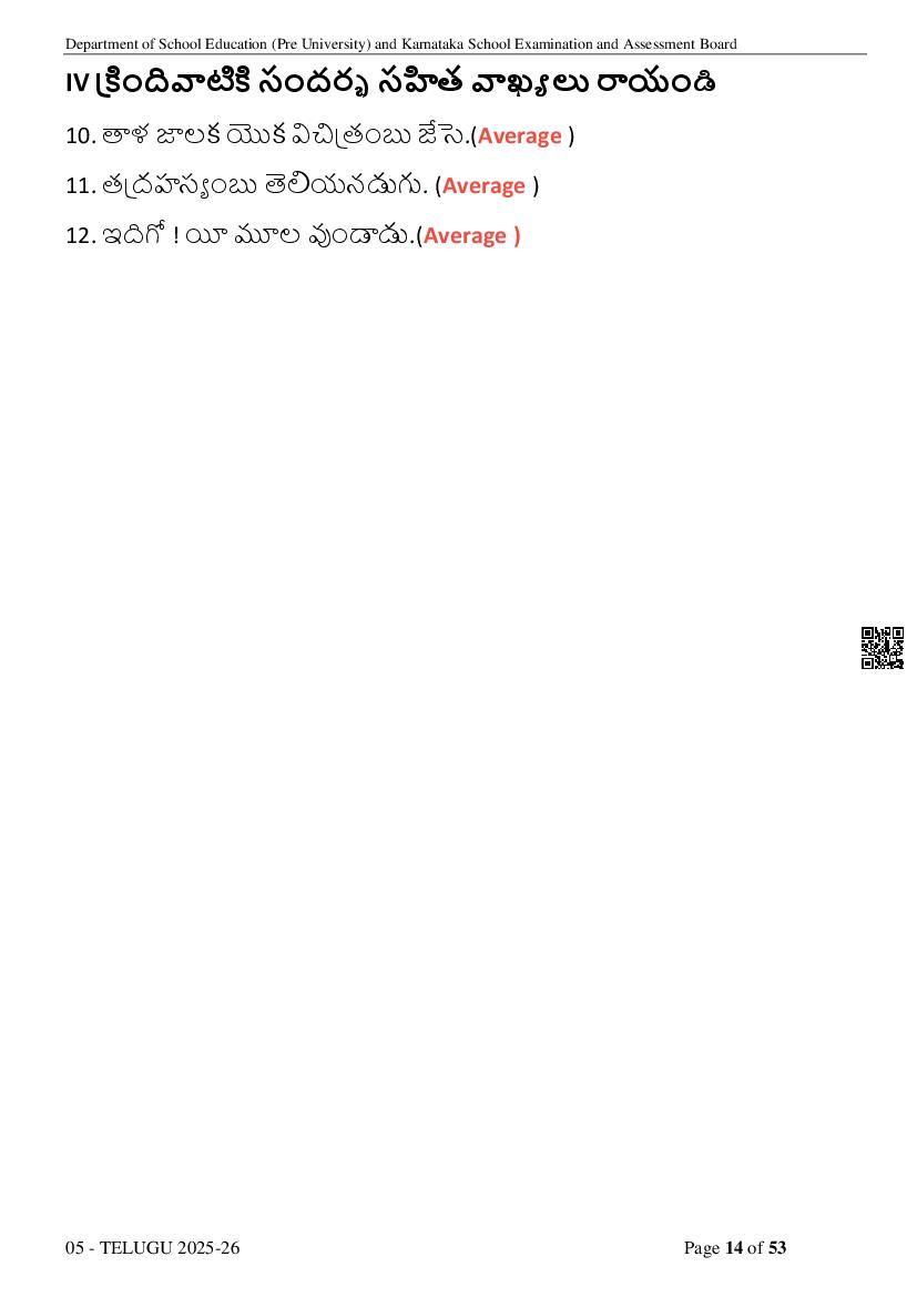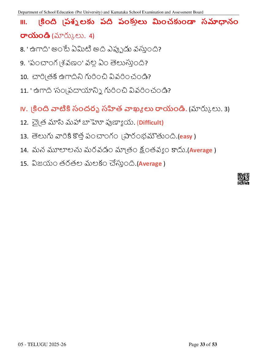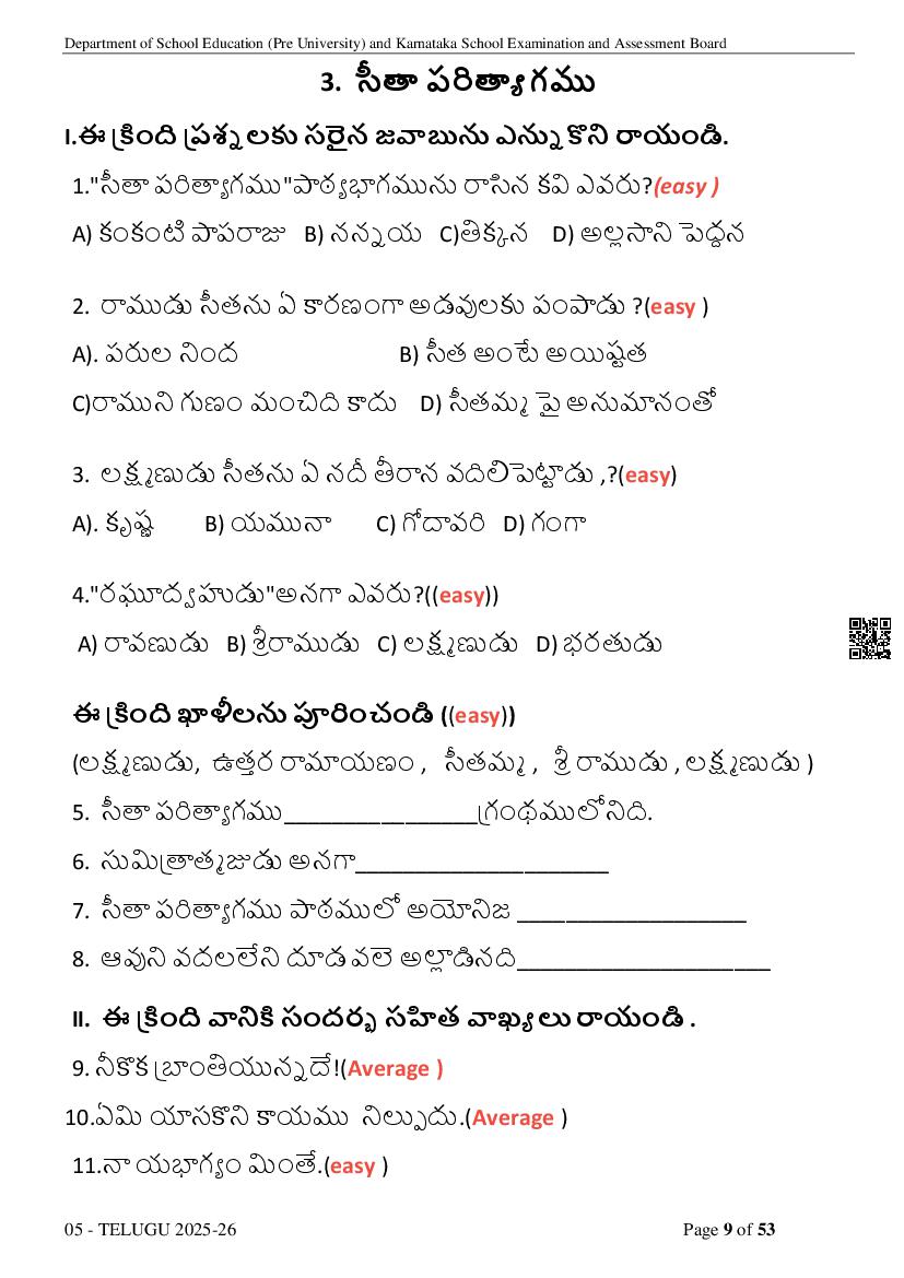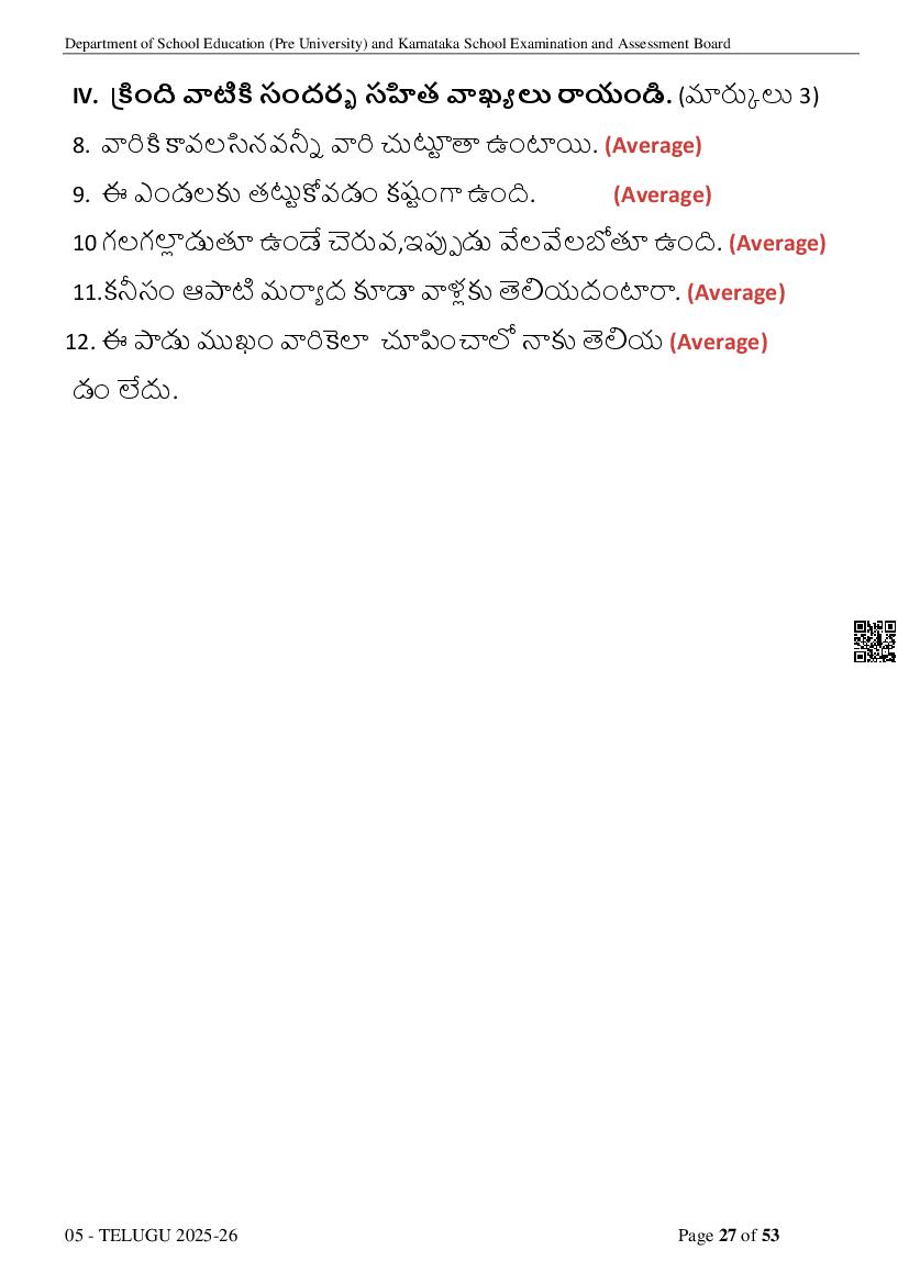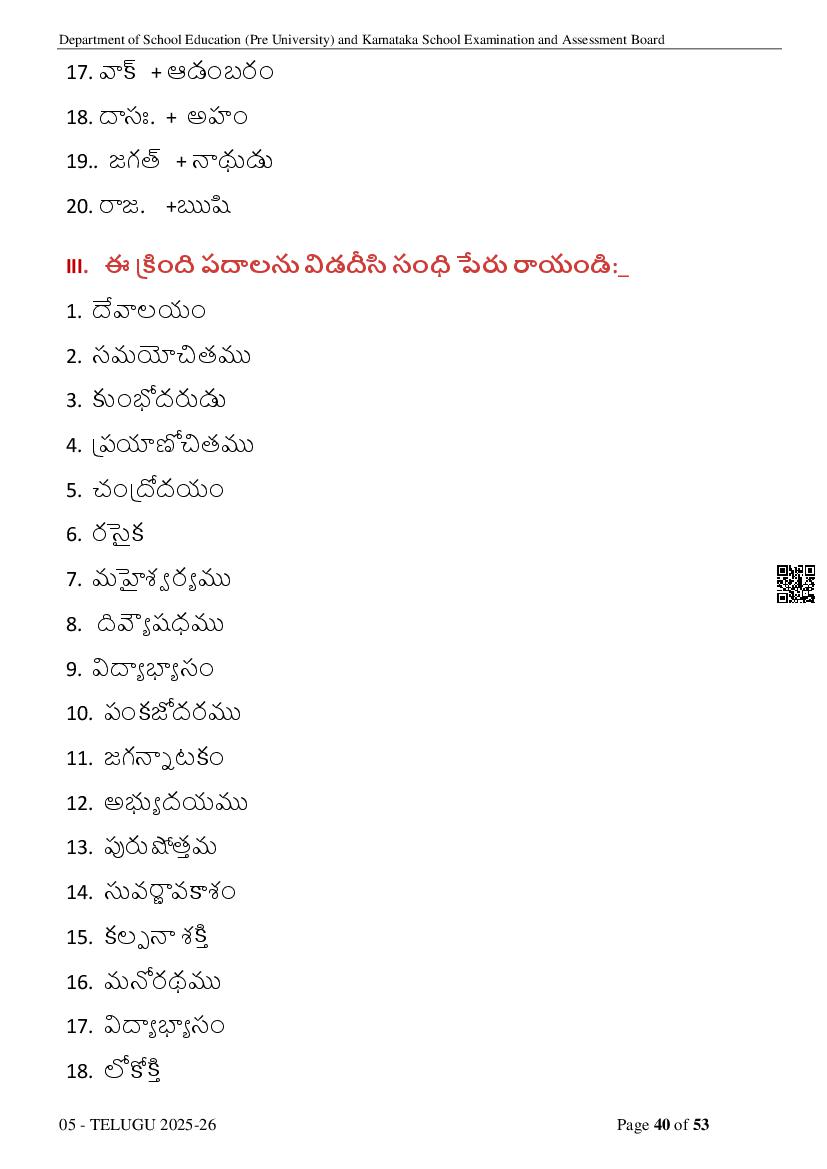 Karnataka 2nd PUC Question Bank for Telugu View Download