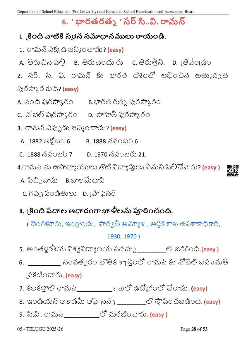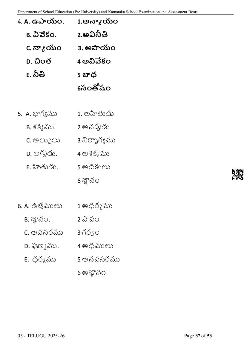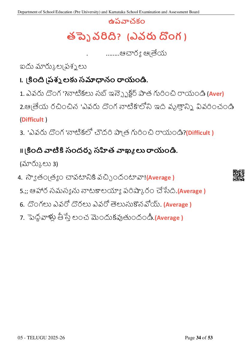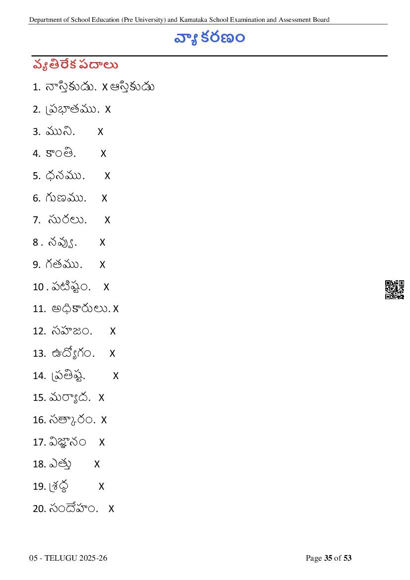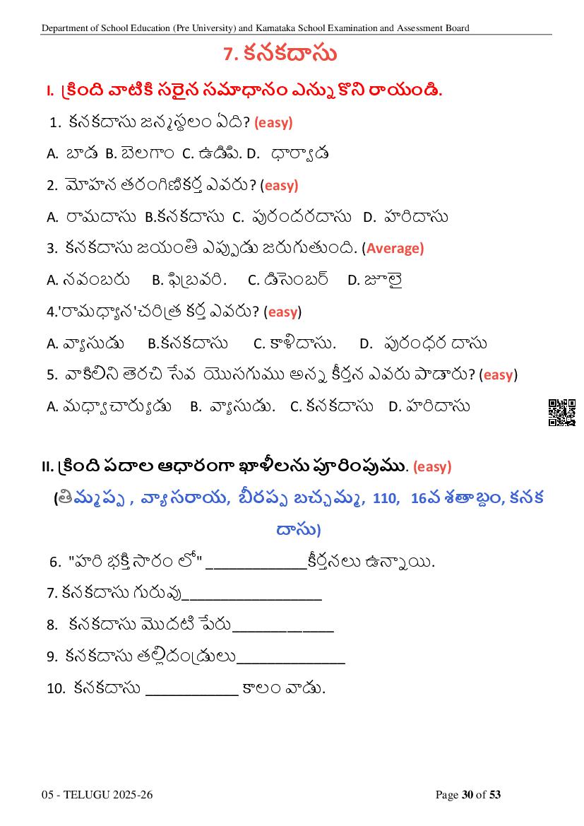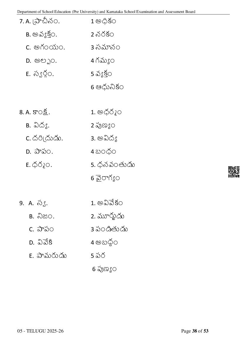 Karnataka 2nd PUC Question Bank for Telugu View Download