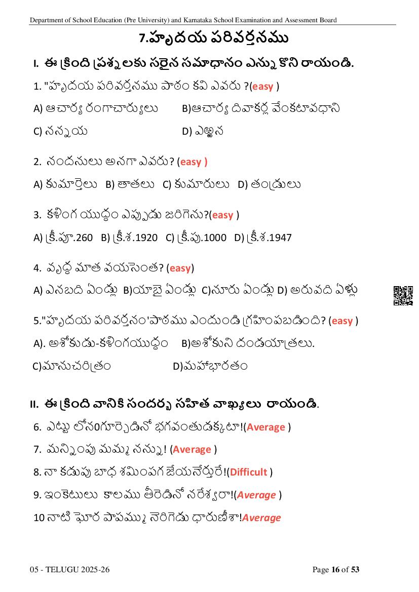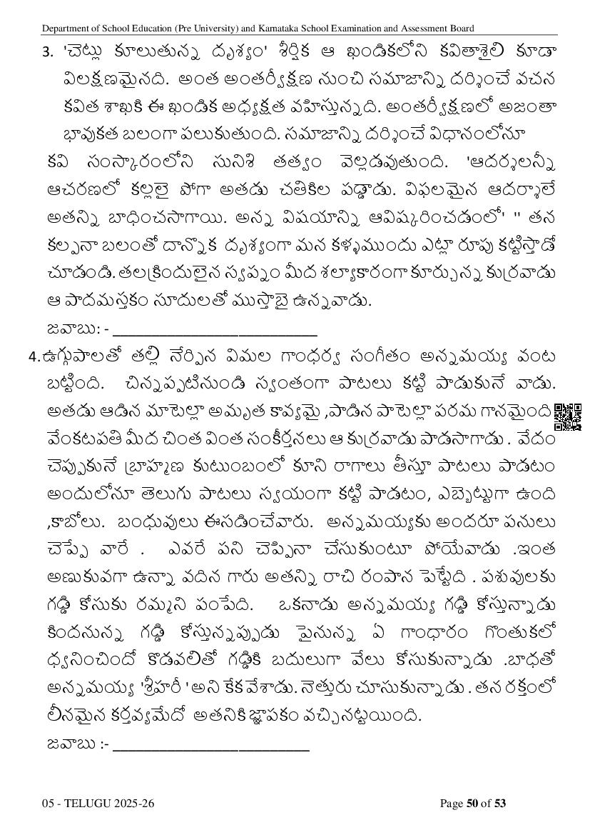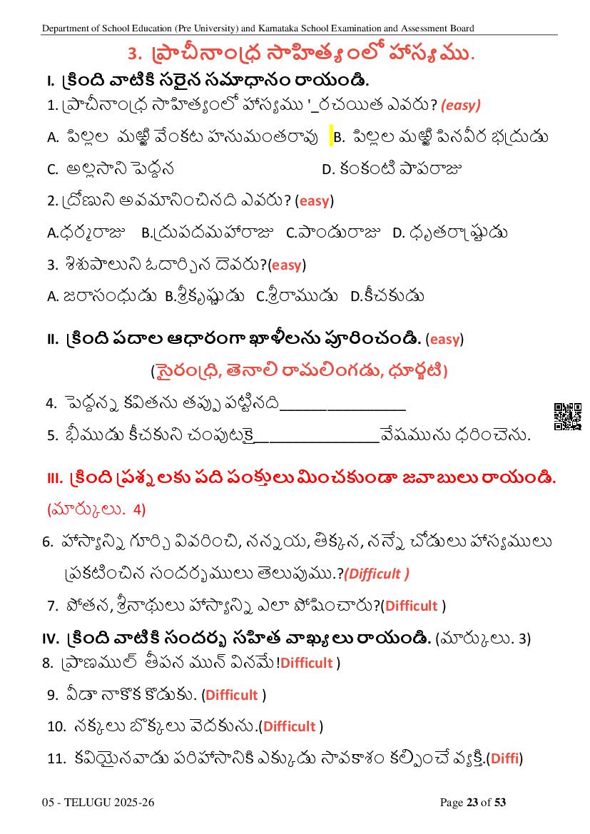 Karnataka State Board II PUC Telugu Question Bank is available for download in PDF format. Simply click the download option to save the file. We recommend that students solve the provided Telugu question bank to improve their exam scores and plan their preparation strategies effectively.