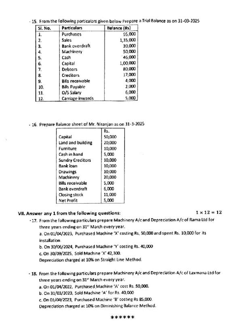 The Karnataka Board Question Paper for Accountancy Second Test exam is as follows.