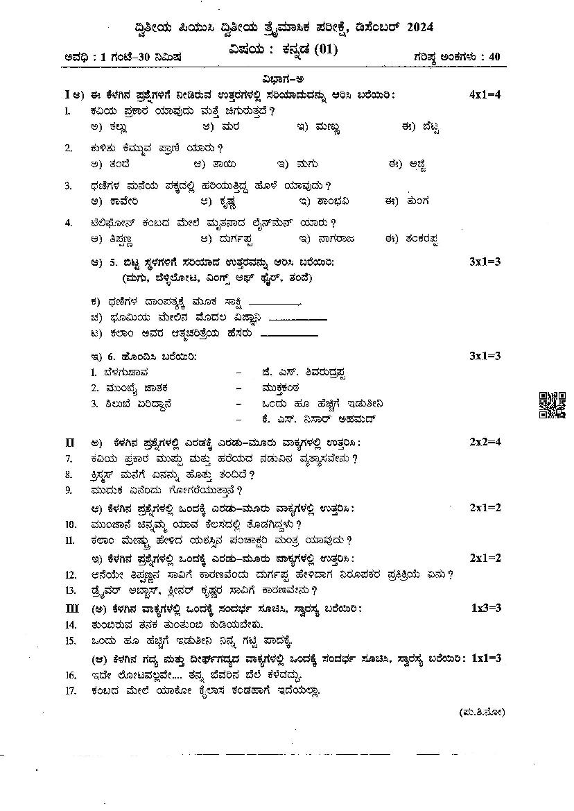 If you have any queries on Karnataka 2nd PUC Kannada Second Test Question Paper 2024, then please ask in comments below.