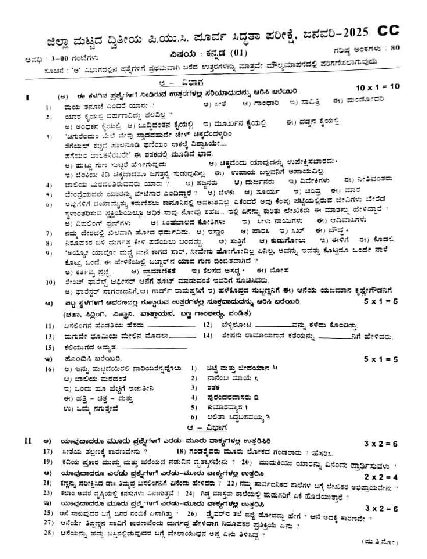 Karnataka 2nd PUC Kannada Preparatory Question Paper 2025 – Click Here to download Question Paper PDF
