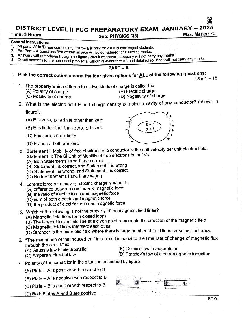 | Study Material Here | Karnataka Board Question Paper of 2nd PUC Physics Preparatory Exam 2025 |