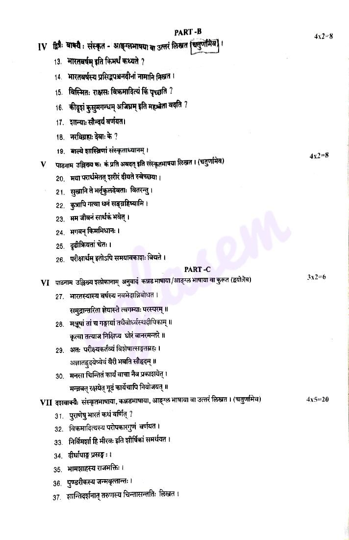 The Karnataka question paper for 2nd PUC Class 12 Preparatory Exam for Sanskrit is as follows.