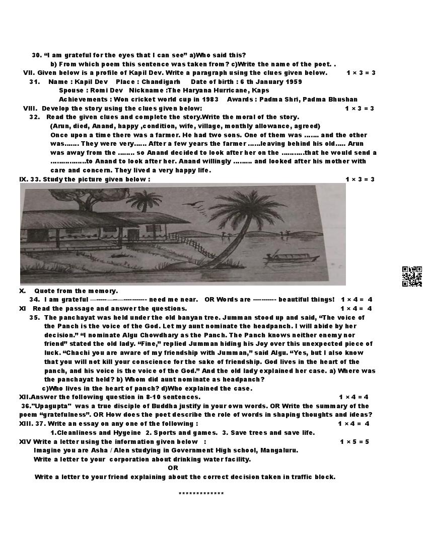 | Material | Karnataka 9th Class SA1 Exam Question Paper of English |