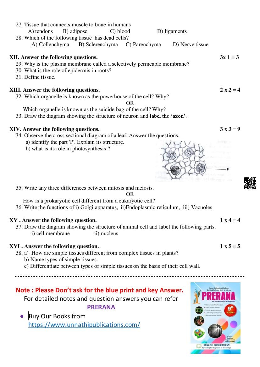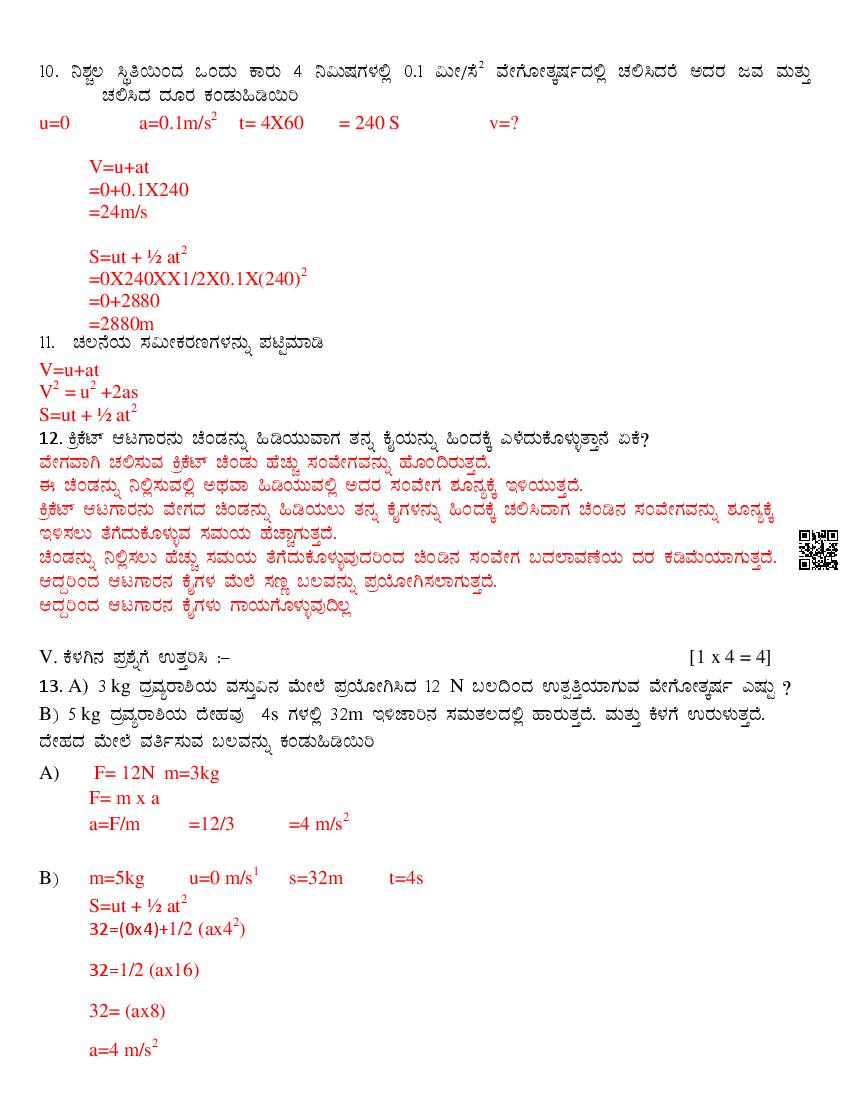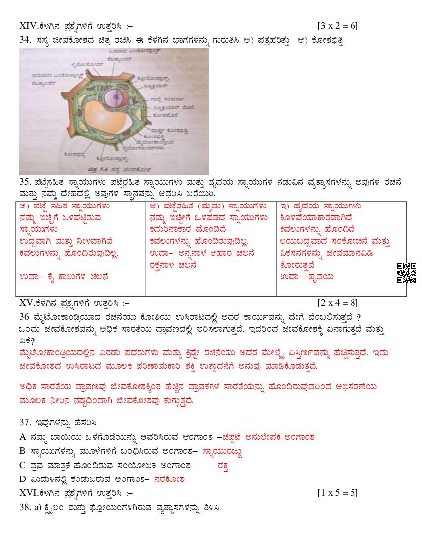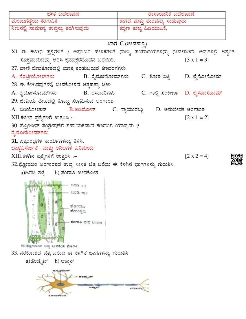 Karnataka 9th Class Science SAq Question Paper 2025
