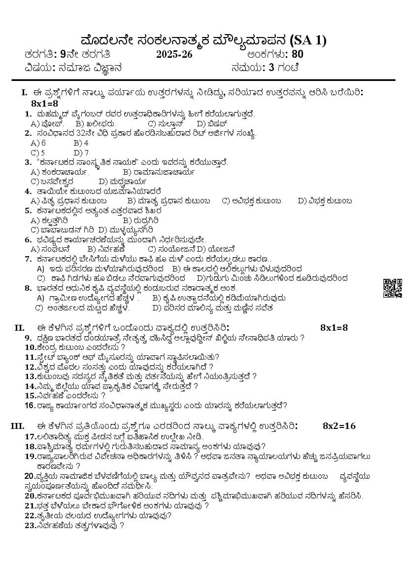 If you have any queries on Karnataka 9th Class Social Science SAq Question Paper 2025, then please ask in comments below.