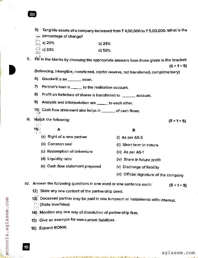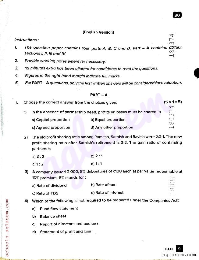 In addition to the 2nd PUC question paper of Accountancy, you can download the previous year question papers for all subjects of this class here at aglasem, as follows.