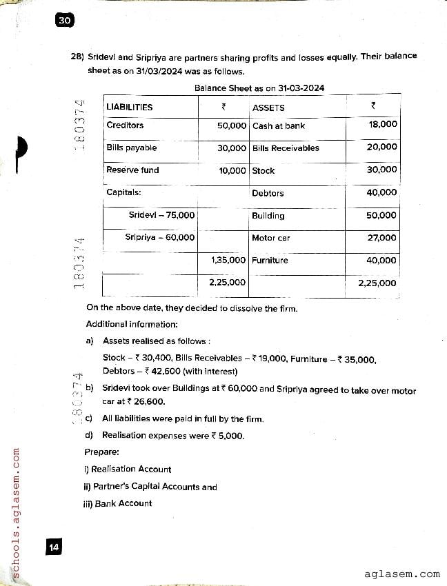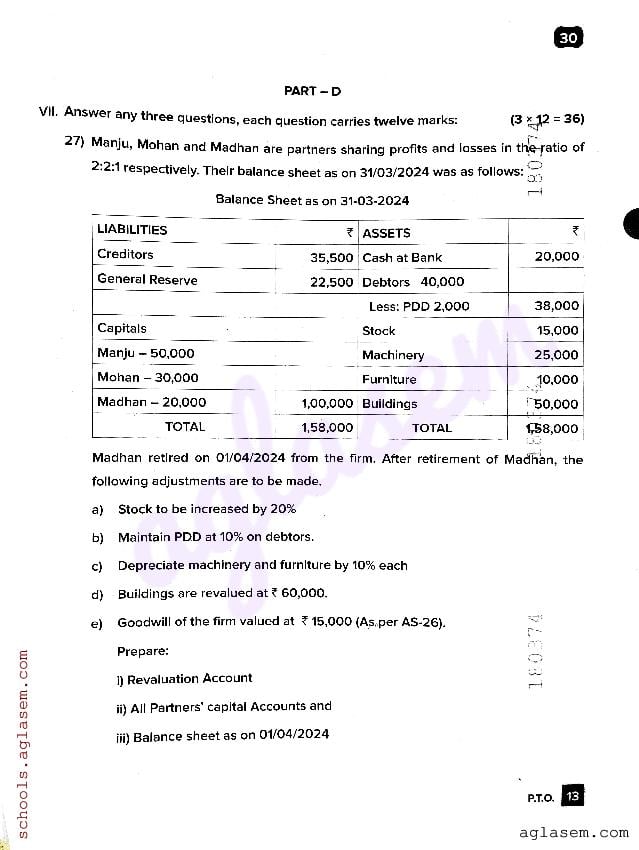 | Material | Karnataka Board Previous Year Question Paper of Class 12 Accountancy |
