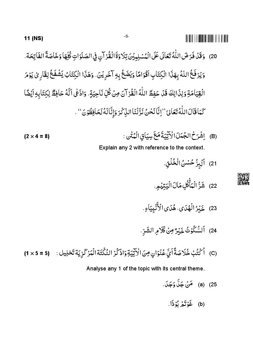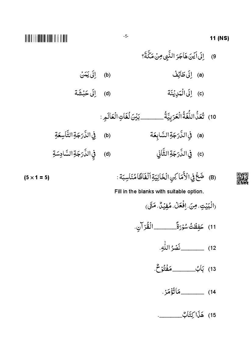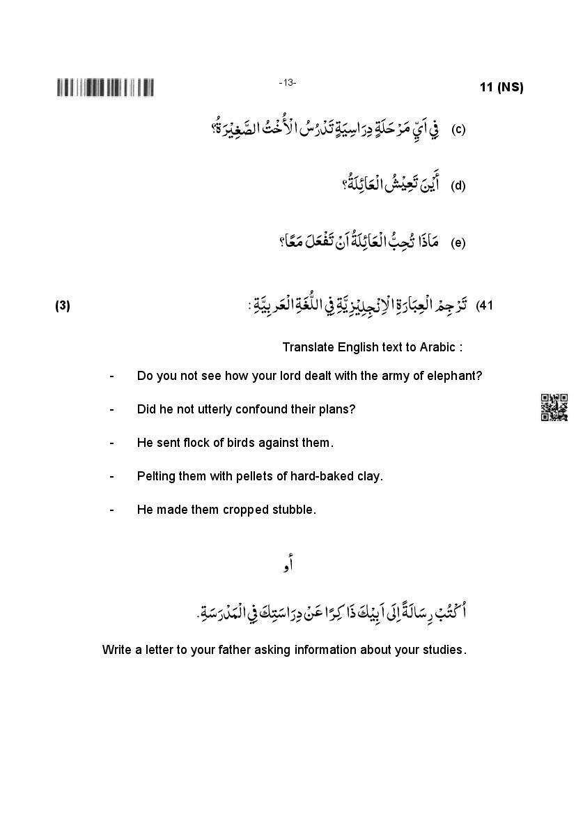 The latest released complete class 12 Arabic question paper PDF is as given below.