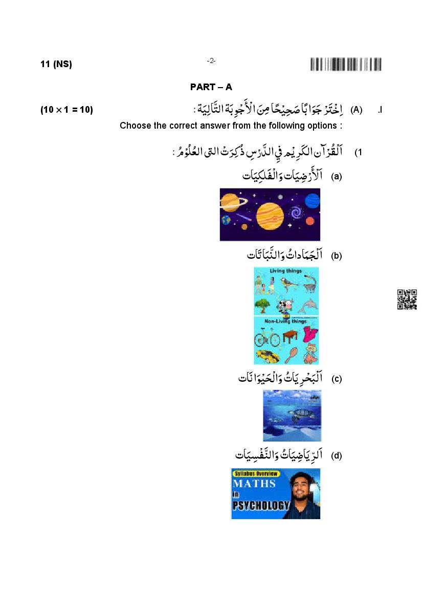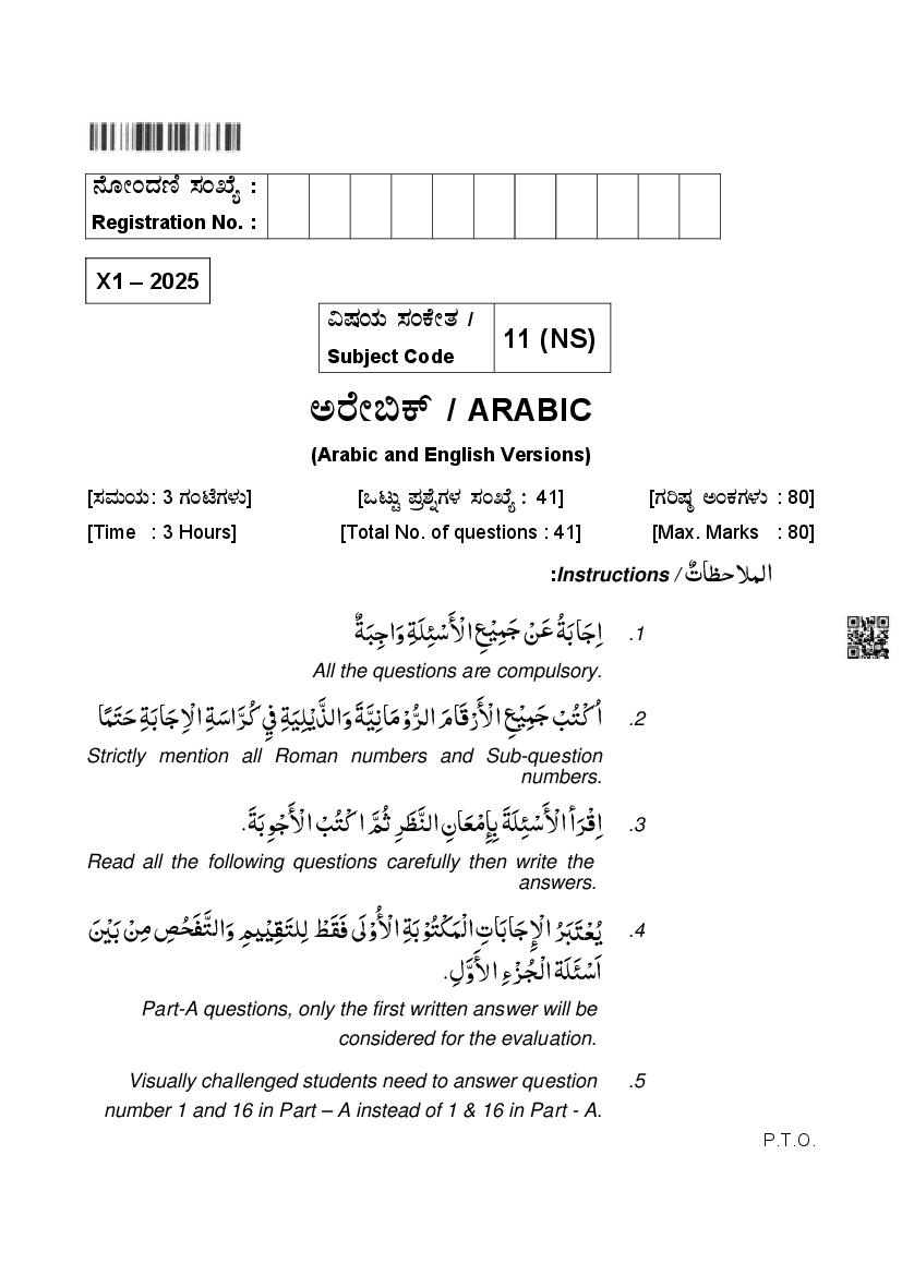 Karnataka 2nd PUC Question Paper 2025 Arabic View Download