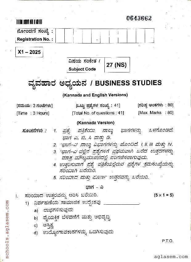 Karnataka 2nd PUC Business Studies Question Paper 2025 is released after the examination. You can download the DPUE Class 12 Previous Year Question Paper for Business Studies PDF right here on aglasem.com. This Karnataka 2nd PUC Question Paper contains the actual questions from the Business Studies exam conducted by the Department Of Pre-University Education in previous years. Hence, by practicing with this class 12 Business Studies paper, you can strengthen your preparation and score well in your 2nd PUC exams.