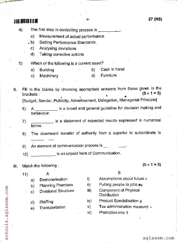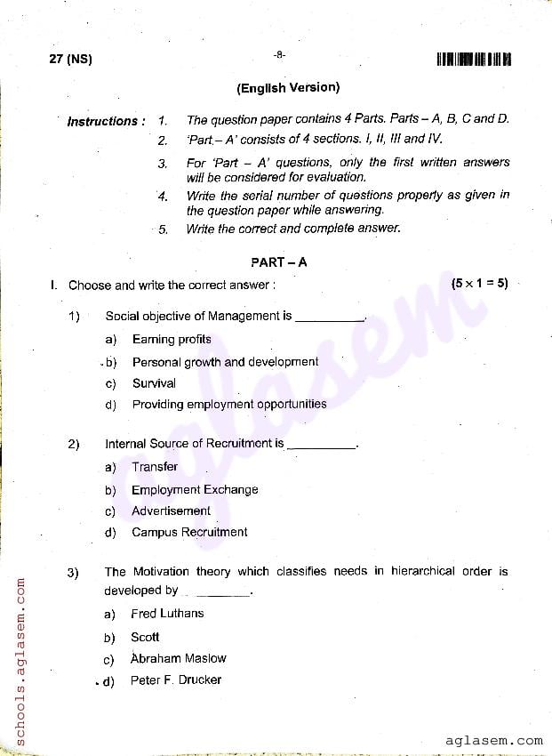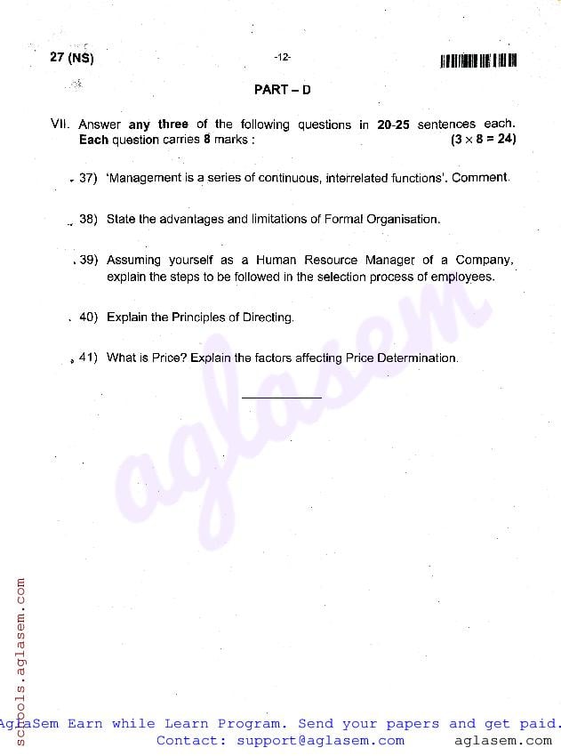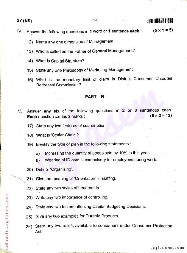 In addition to the 2nd PUC question paper of Business Studies, you can download the previous year question papers for all subjects of this class here at aglasem, as follows.