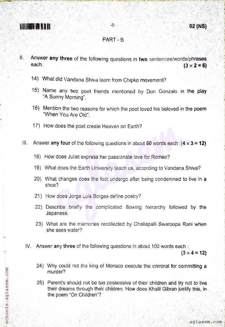 In addition to the 2nd PUC question paper of English, you can download the previous year question papers for all subjects of this class here at aglasem, as follows.