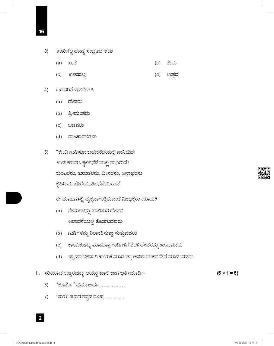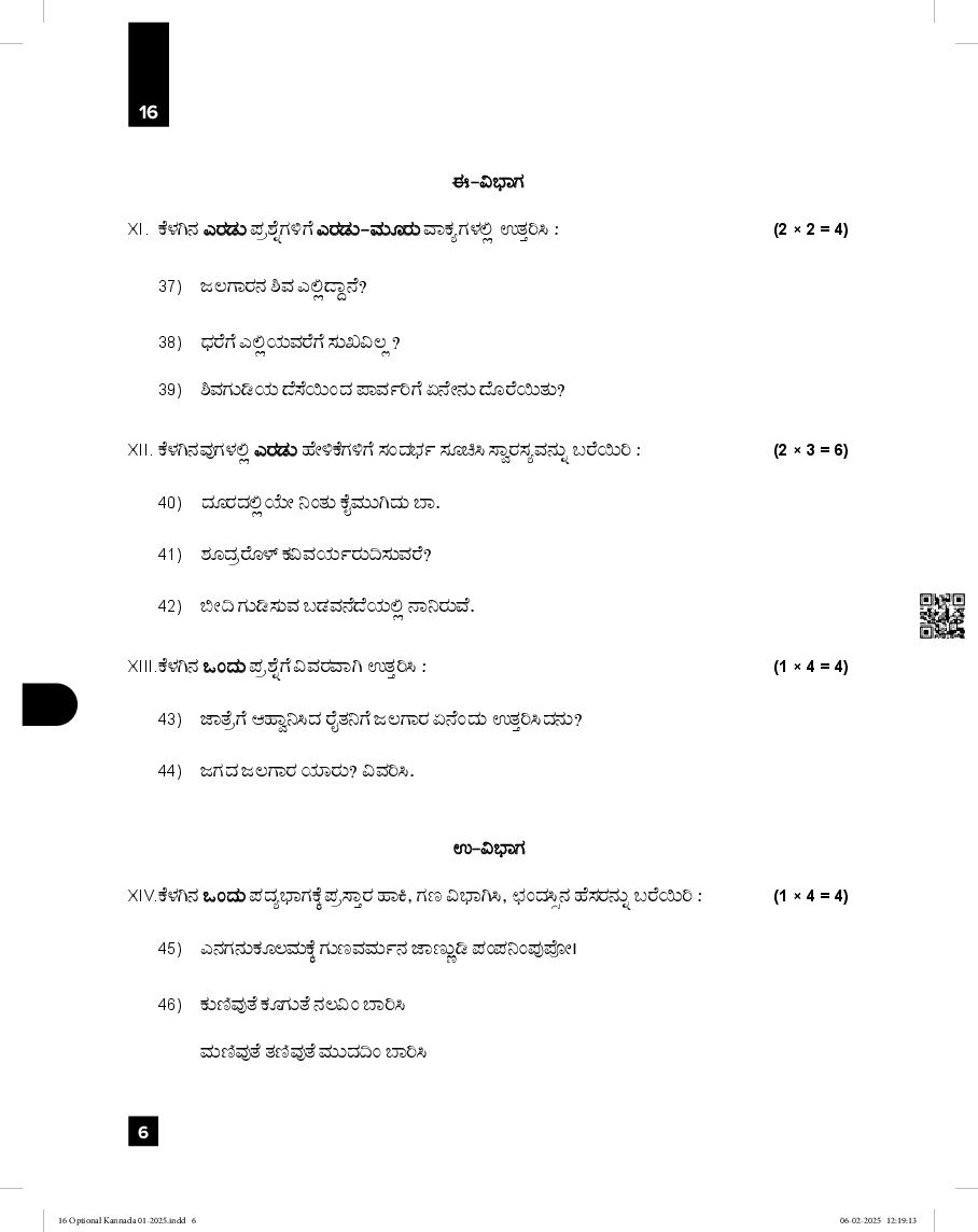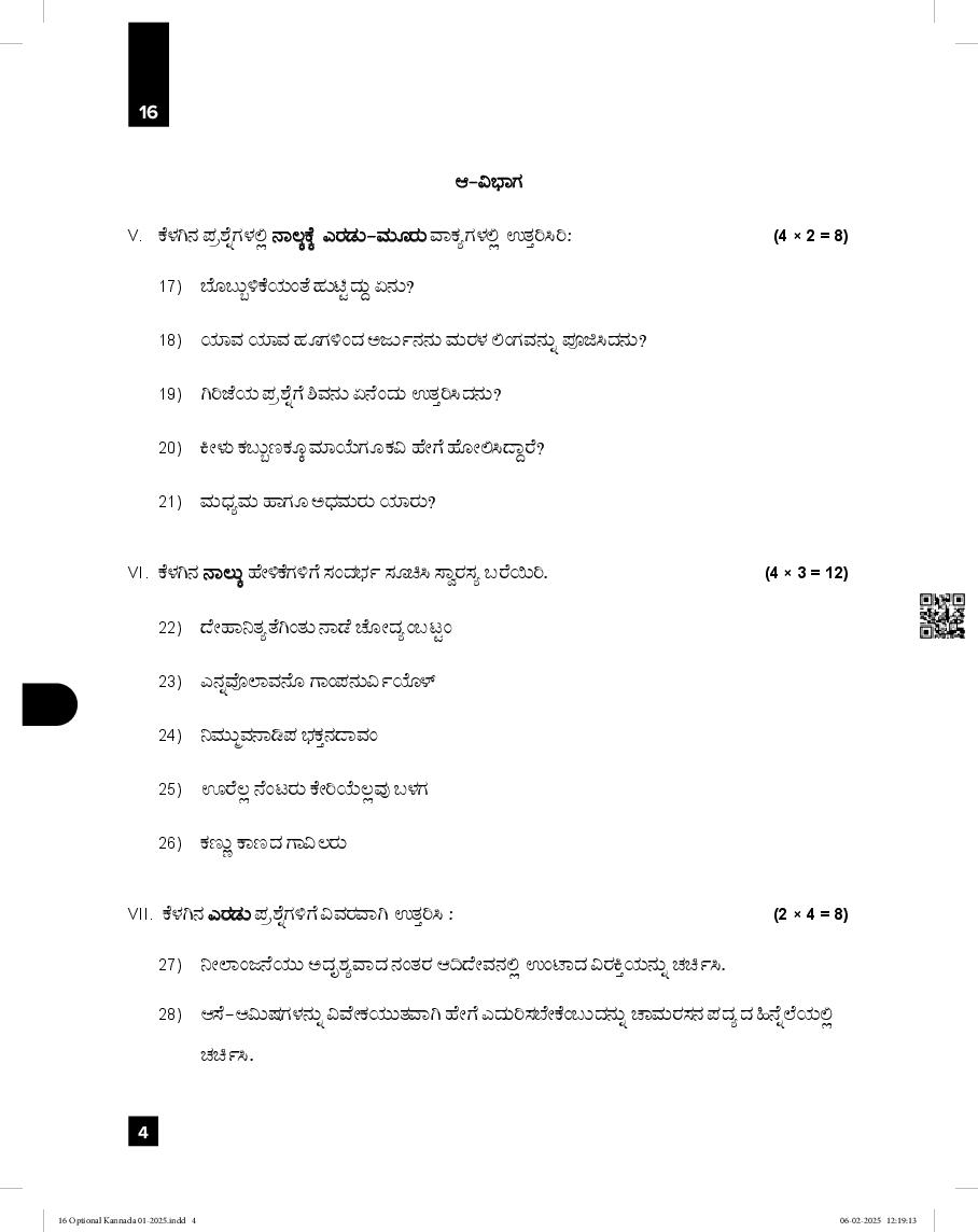 The latest released complete class 12 Kannada Optional question paper PDF is as given below.