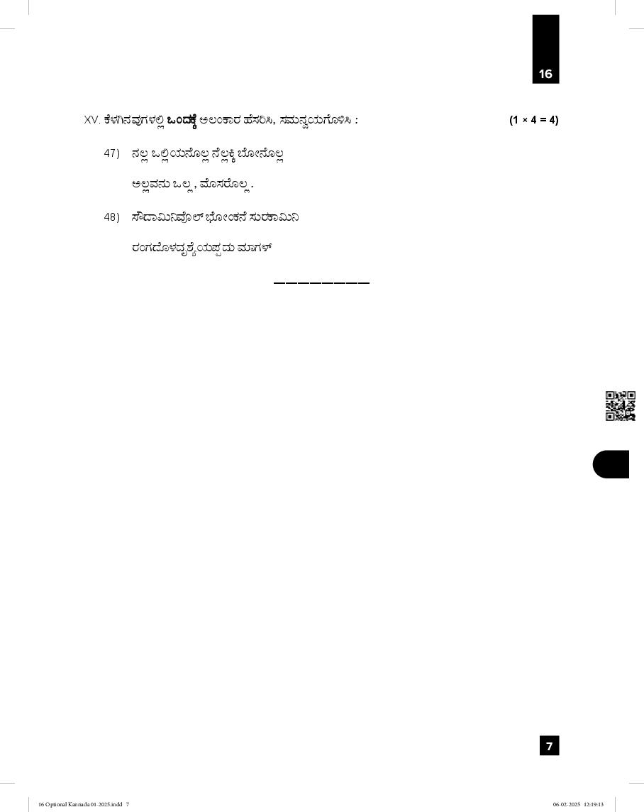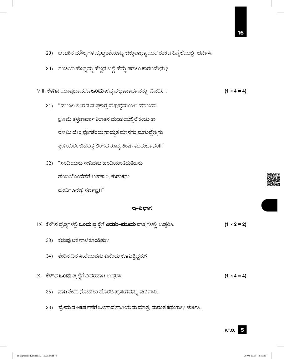 Karnataka 2nd PUC Kannada Optional Question Paper 2025
