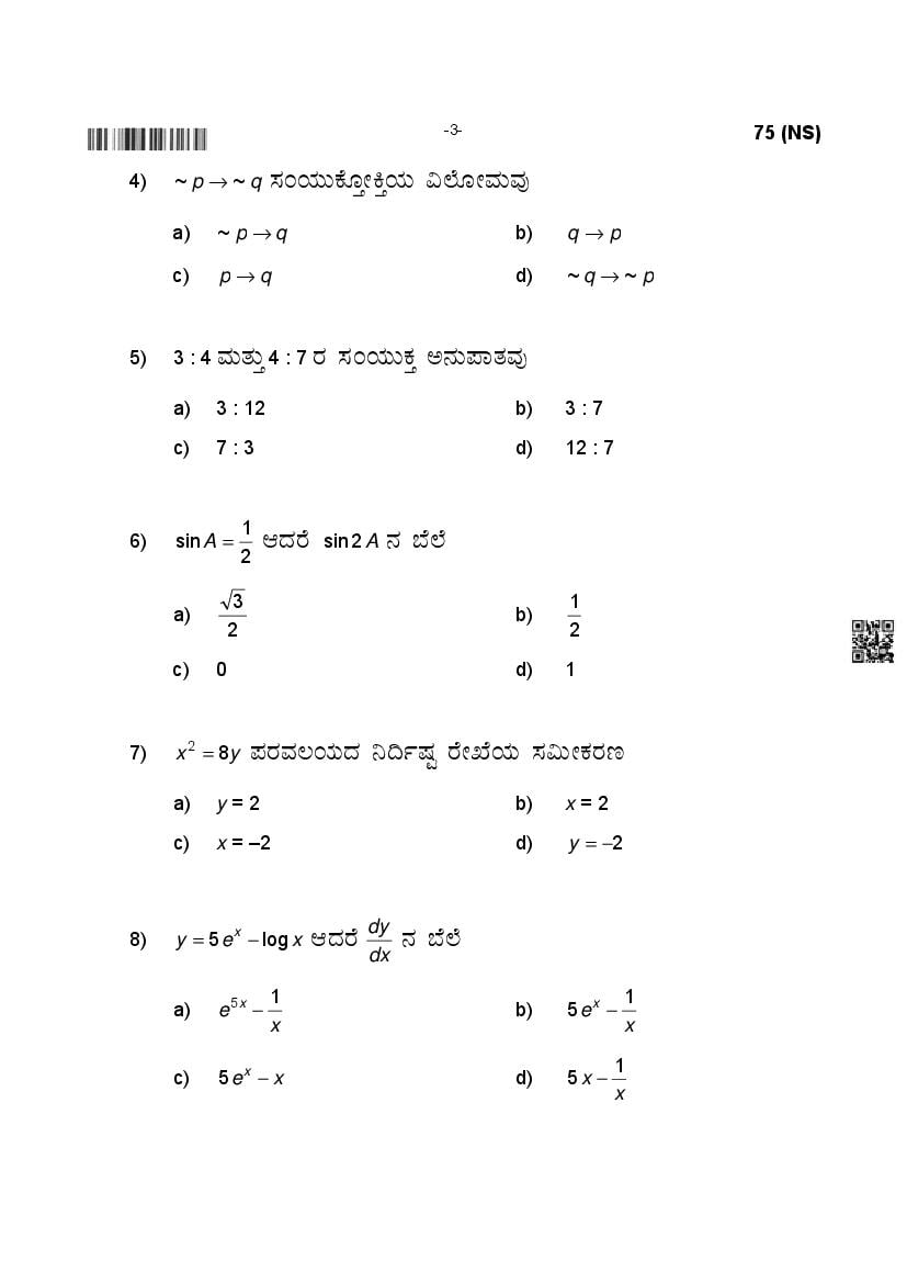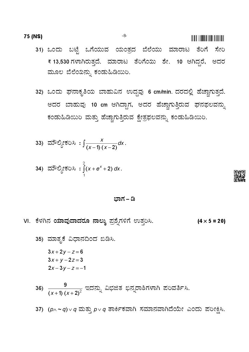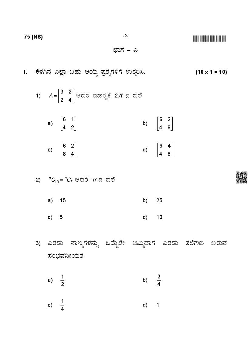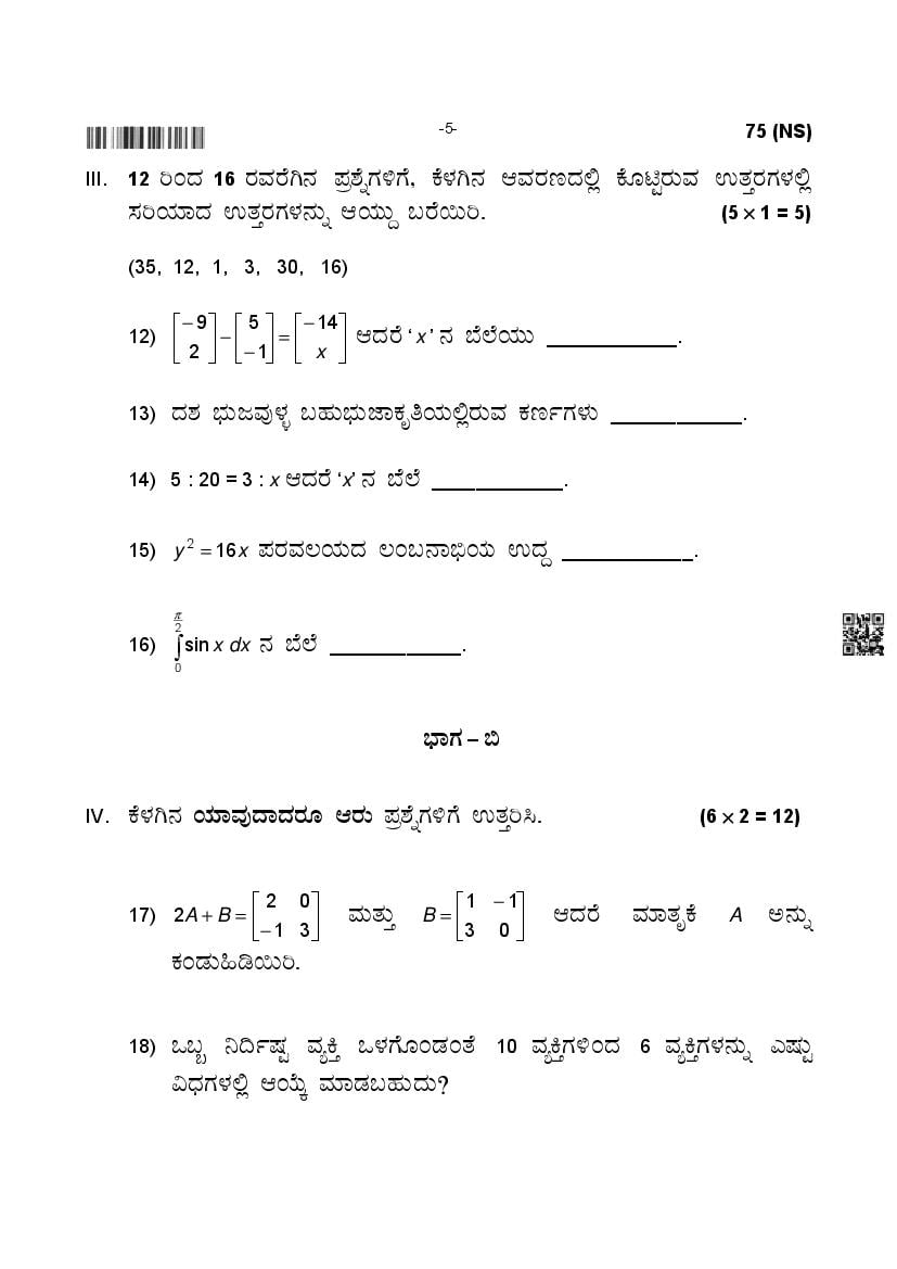 Karnataka 2nd PUC Question Paper 2025 Mathematics Basic View Download