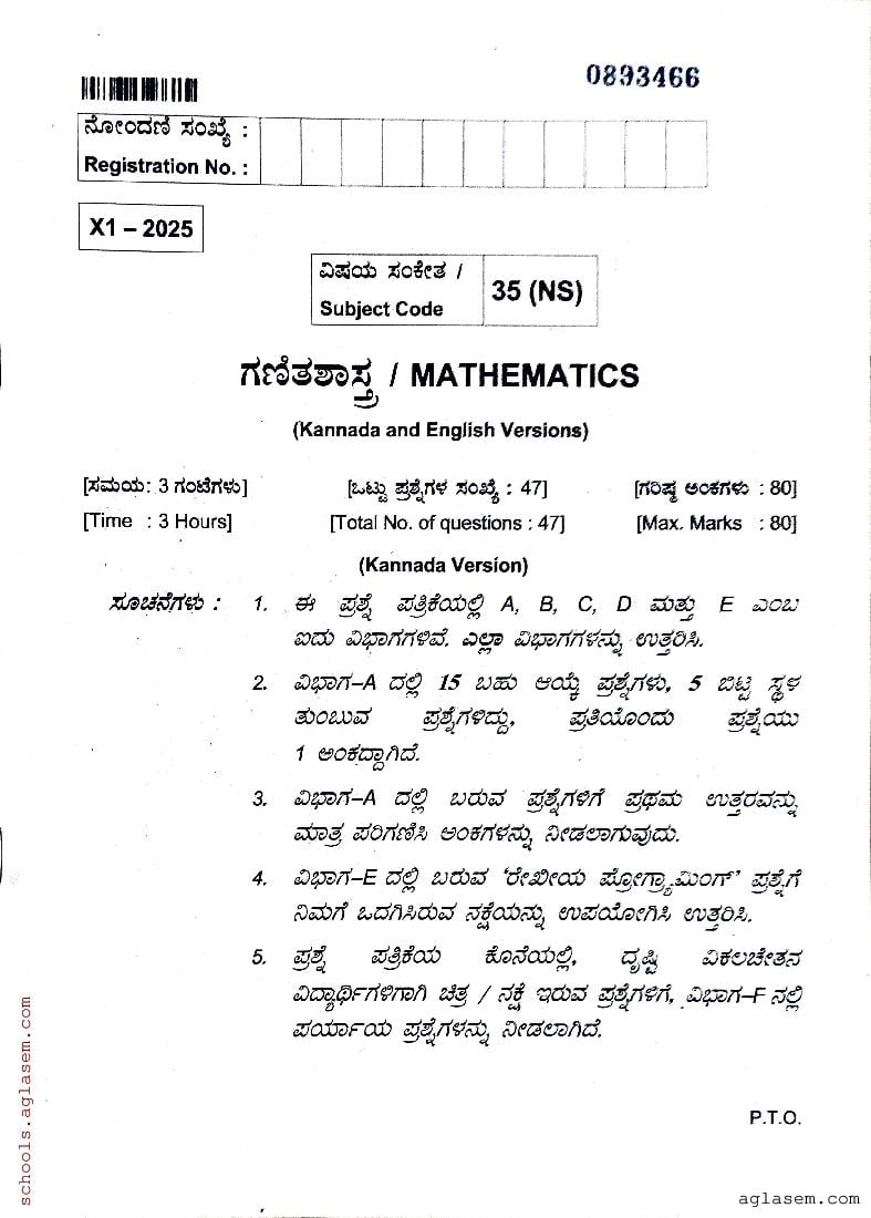 Karnataka 2nd PUC Question Paper 2025 Maths View Download
