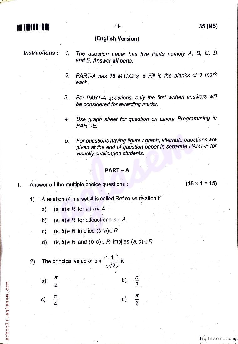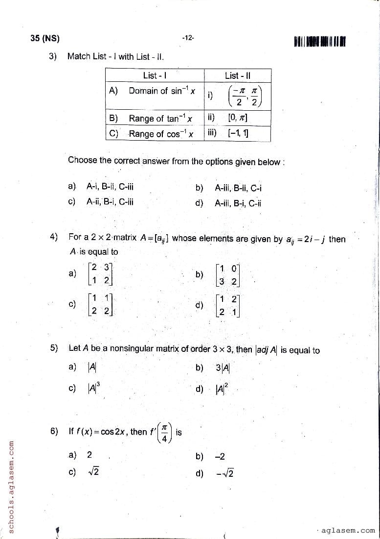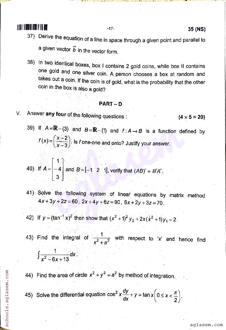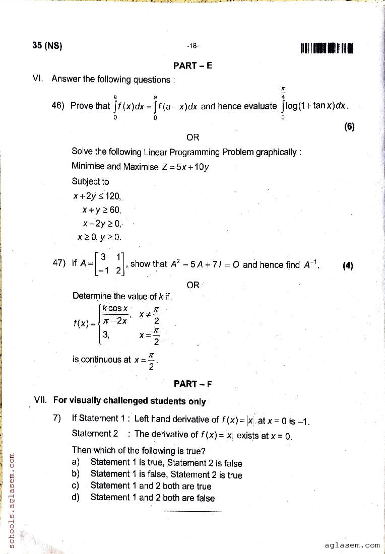 The latest released complete class 12 Maths question paper PDF is as given below.