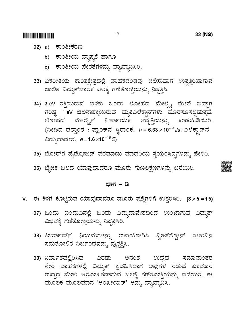 Karnataka 2nd PUC Physics Question Paper 2025