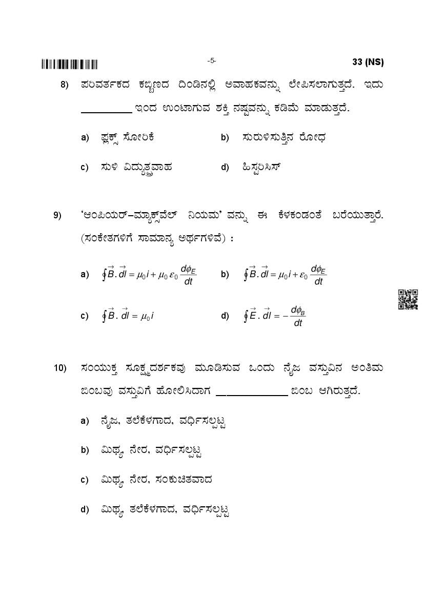 The Karnataka Board Question Paper of class 12th (2nd PUC) for Physics is as follows.