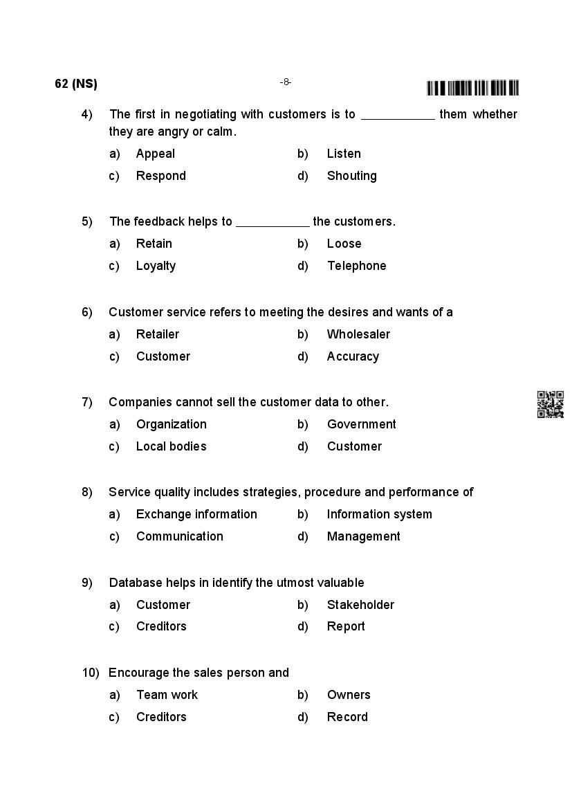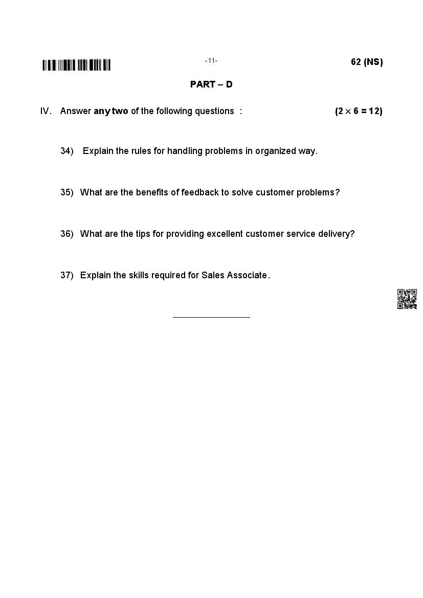 | Material | Karnataka Board Previous Year Question Paper of Class 12 Retail Business |