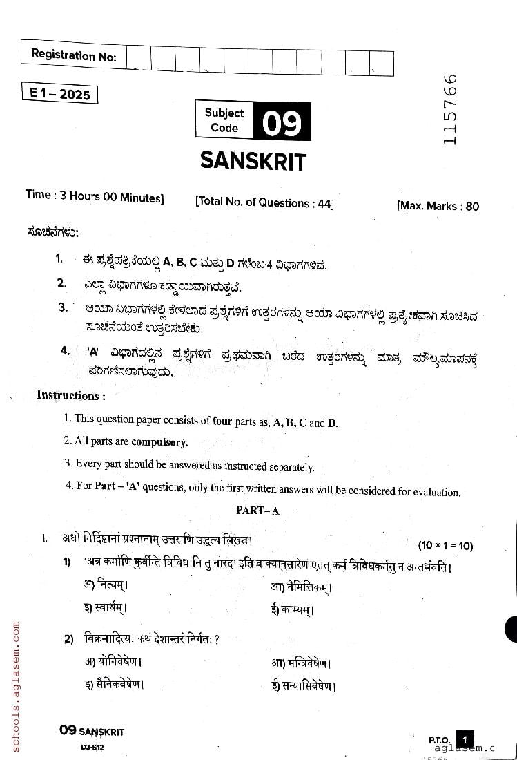| Material | Karnataka Board Previous Year Question Paper of Class 12 Sanskrit |
