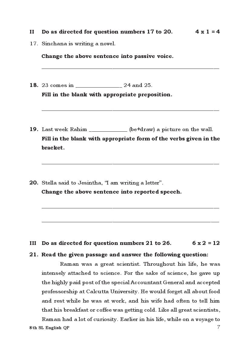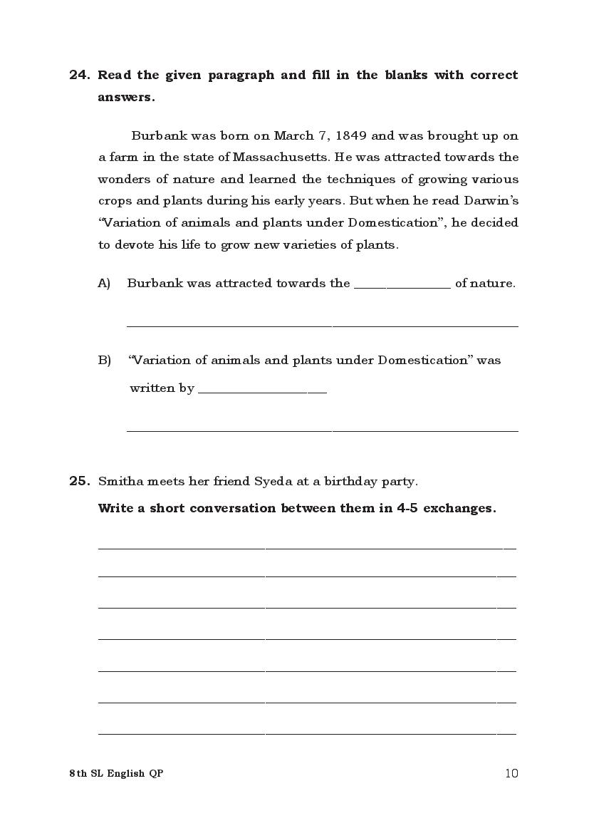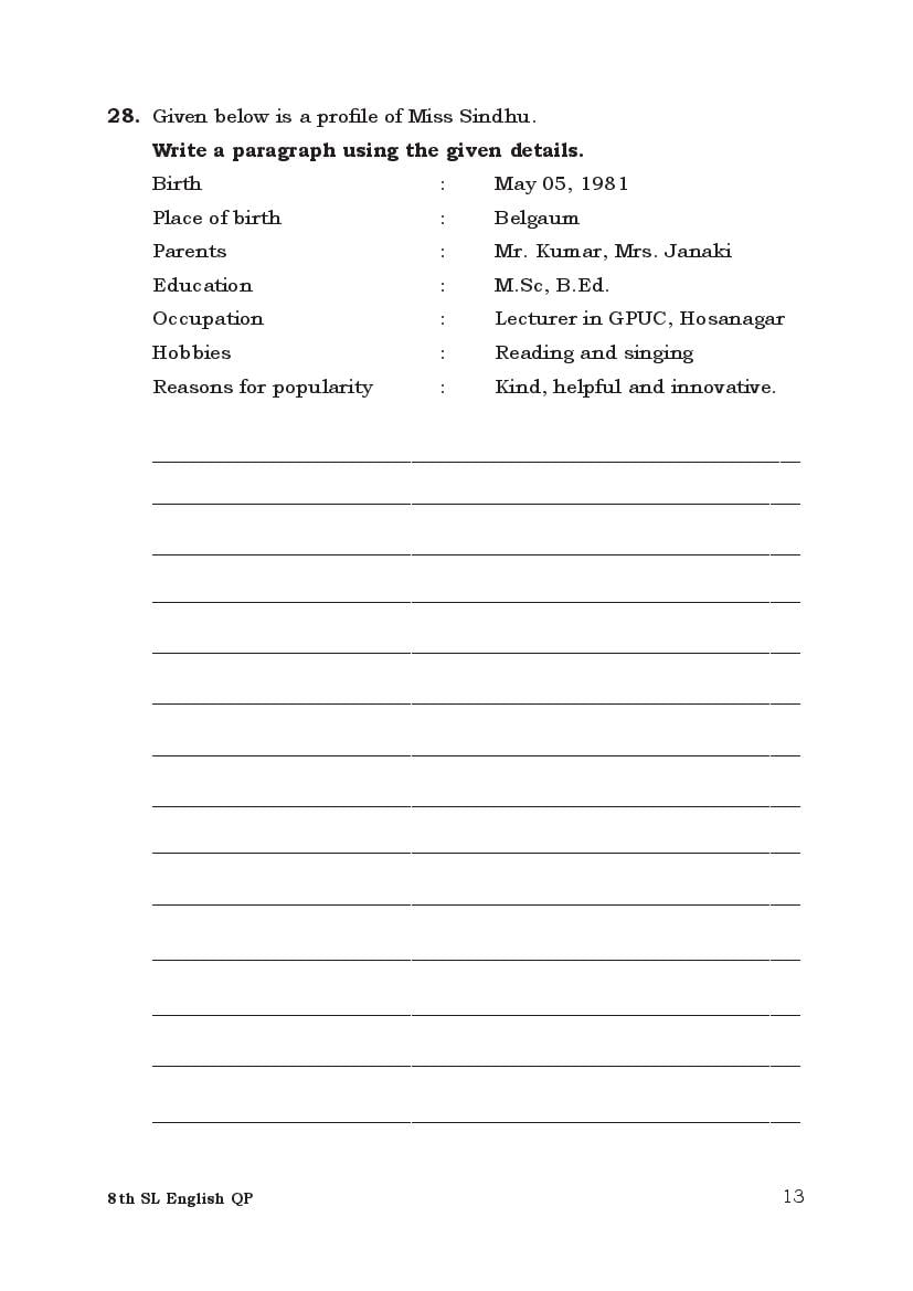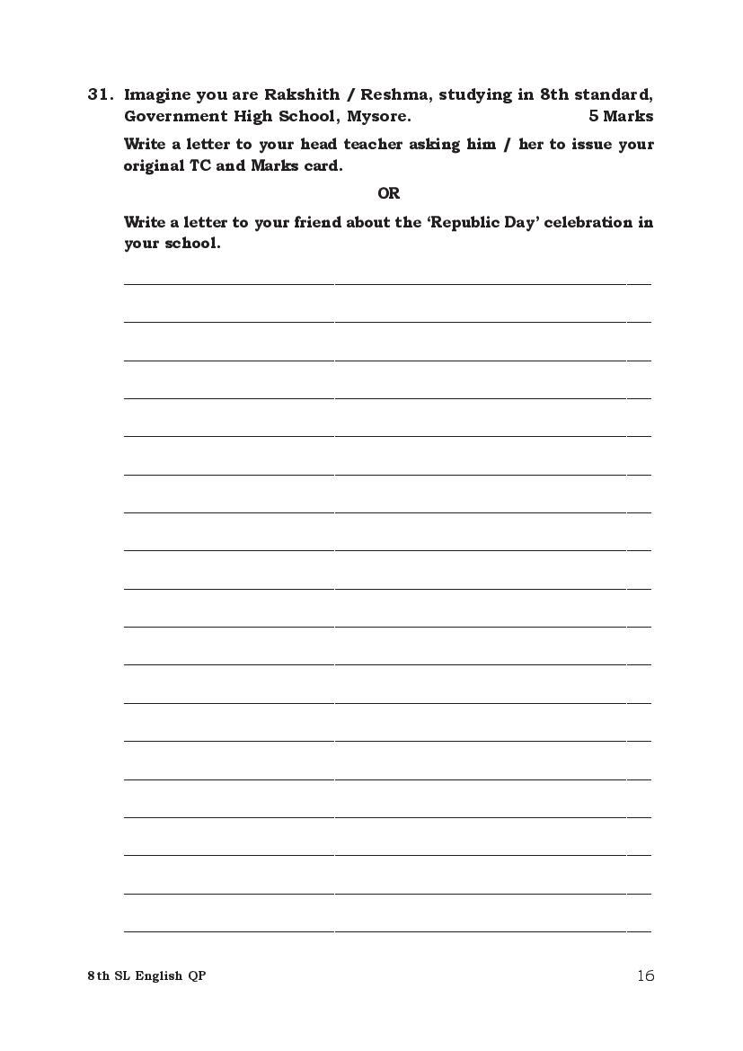 | Study Material Here | Karnataka Board Model Question Paper for Class 8 English Second Language |