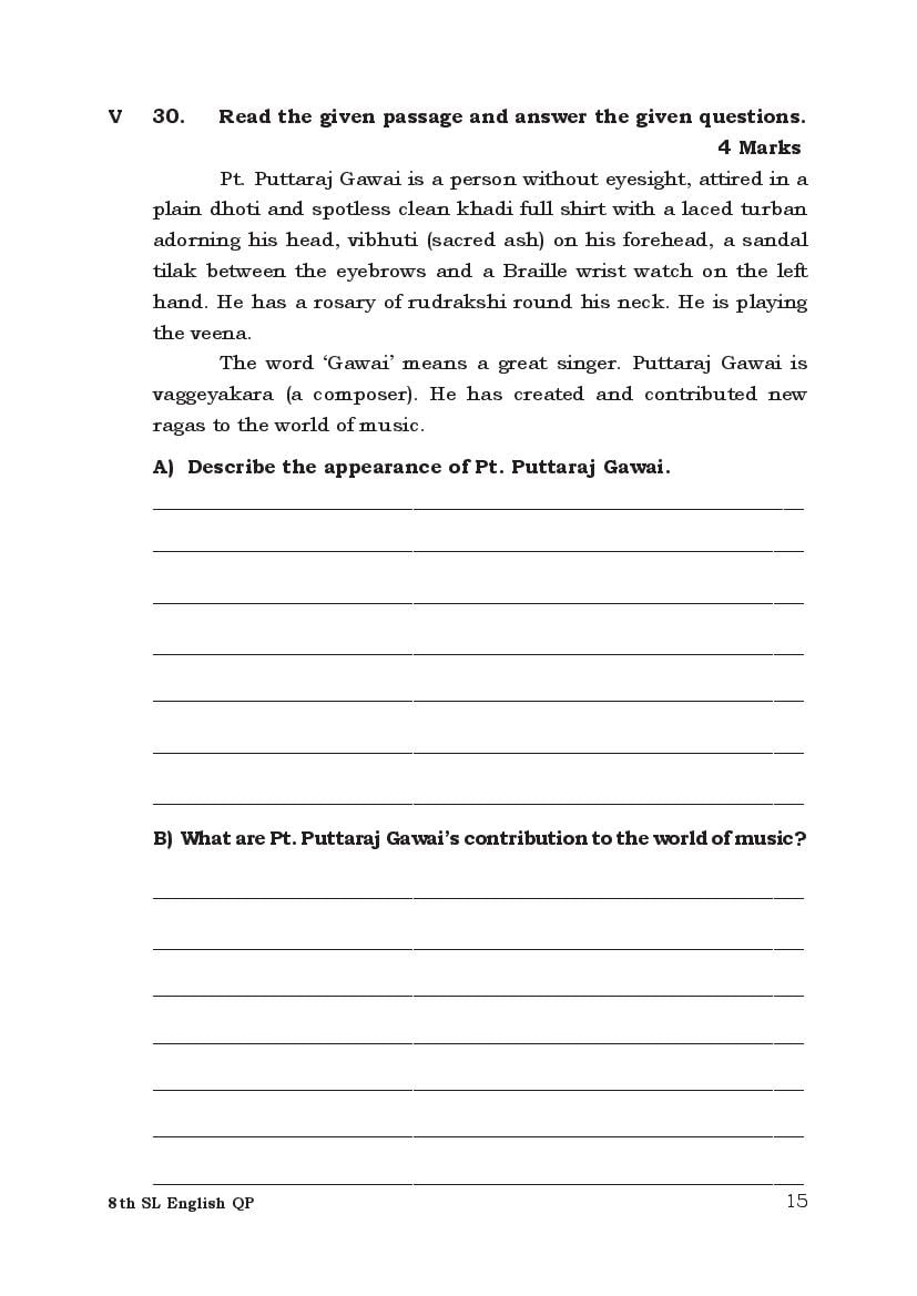 The Karnataka Board Model Paper for Class 8 English Second Language is as follows.