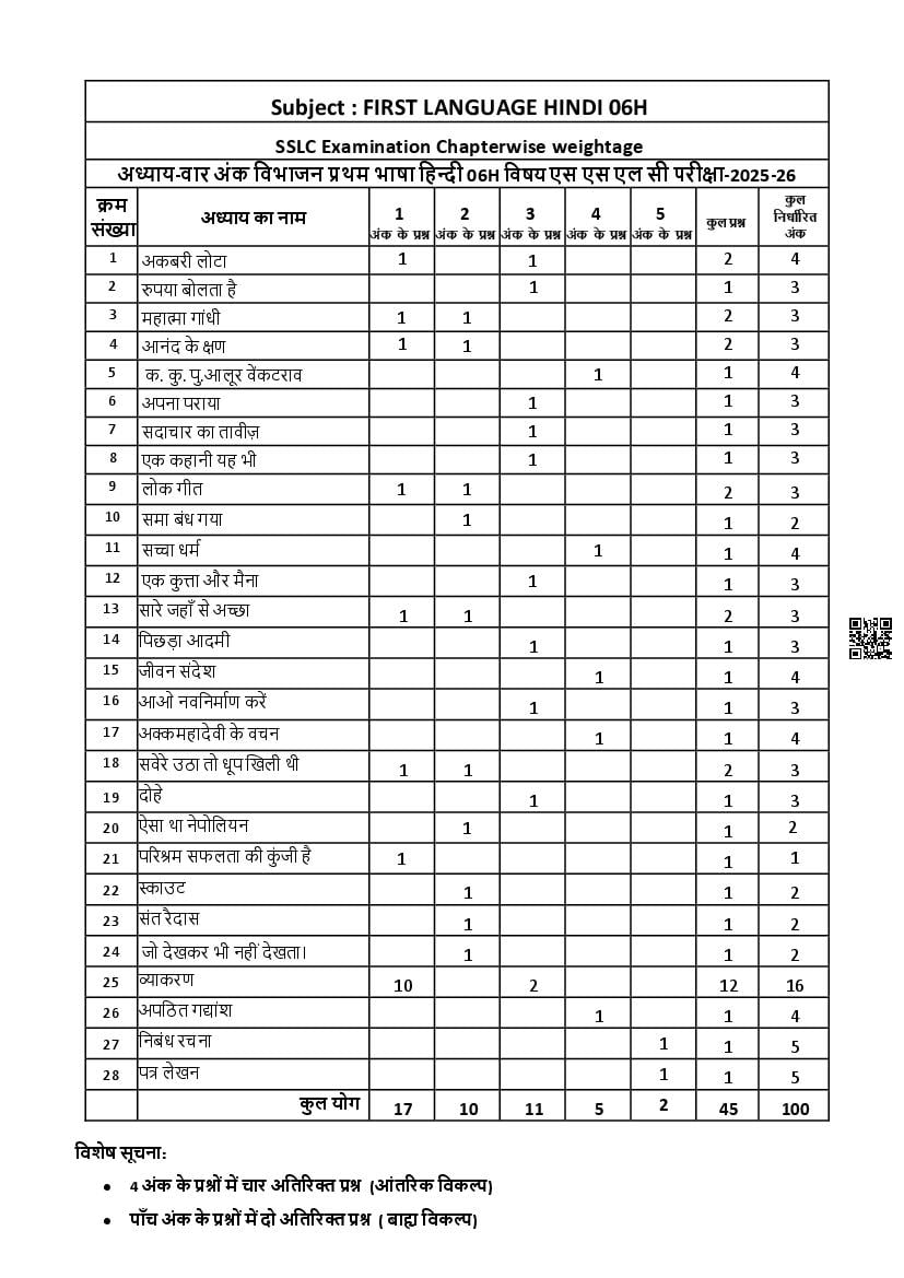 | Resource Here | Karnataka SSLC Blueprint for Hindi |