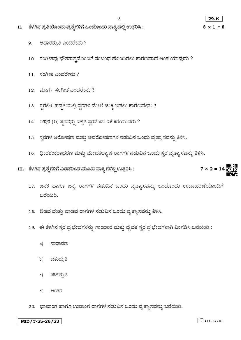 The Karnataka Board Question Paper for Karnatic Music mid term exam is as follows.