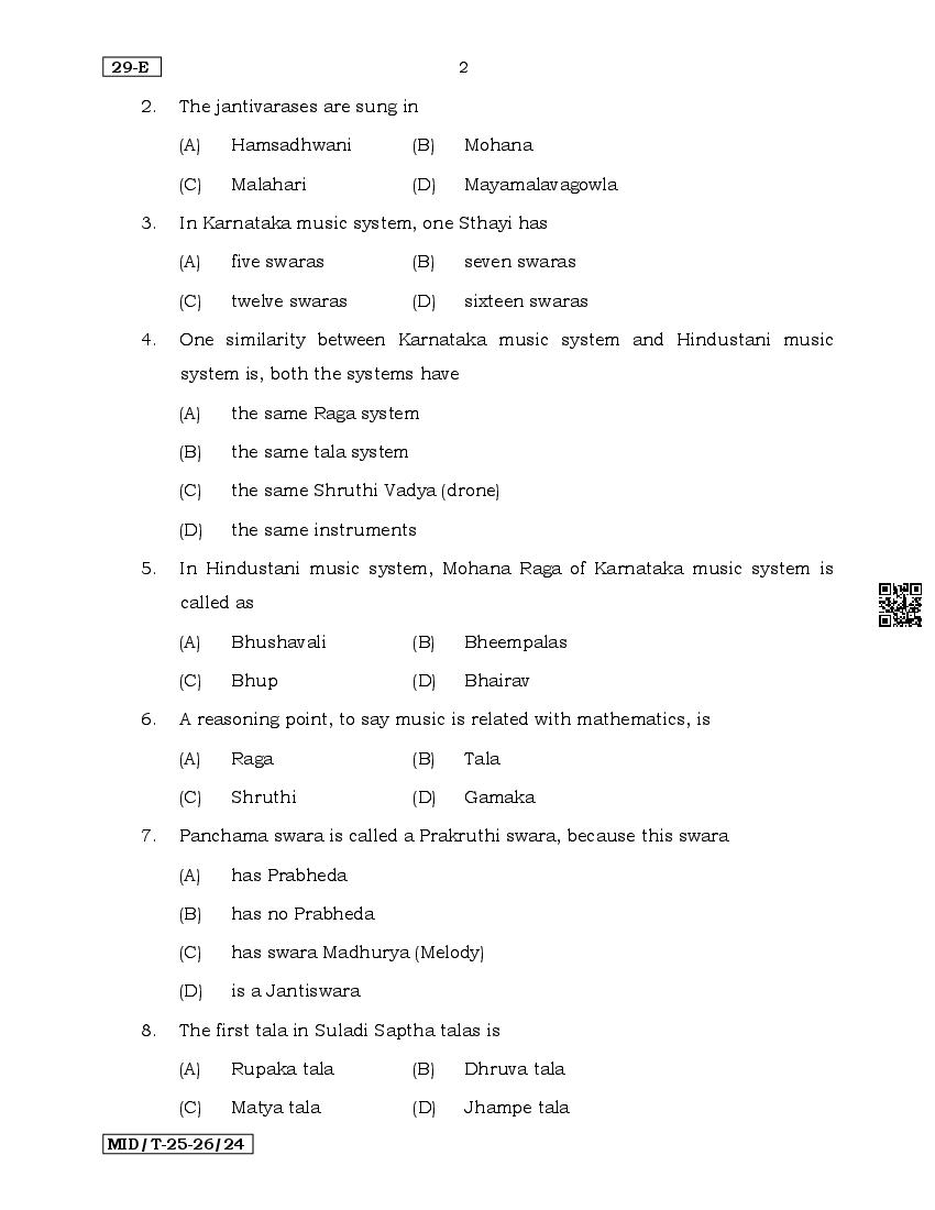 The latest available complete Karnatic Music mid term exam question paper is as follows.