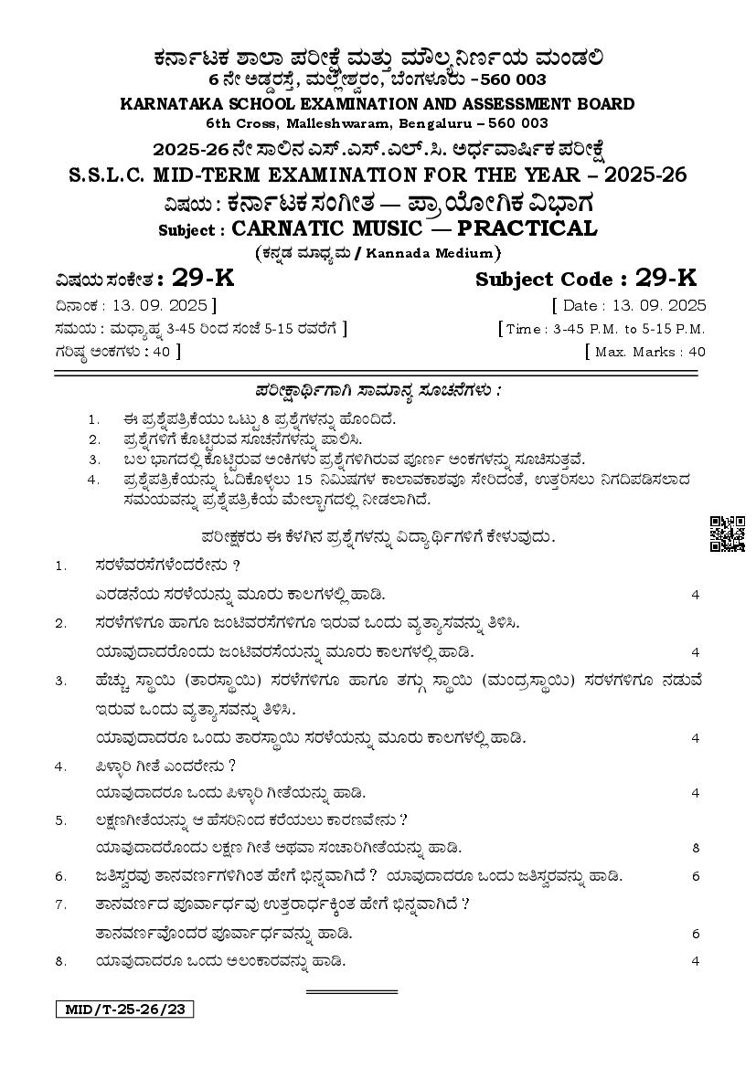 If you have any queries on Karnataka SSLC Karnatic Music Mid Term Question Paper 2025, then please ask in comments below.