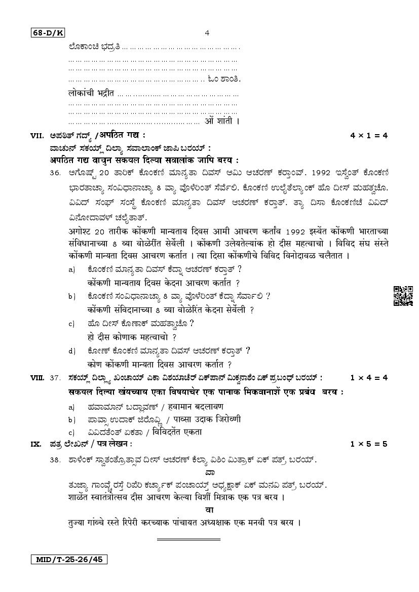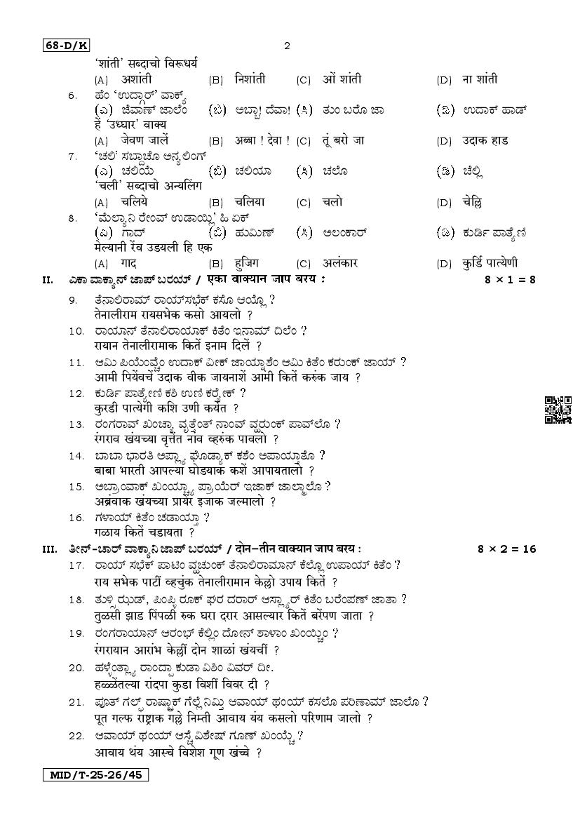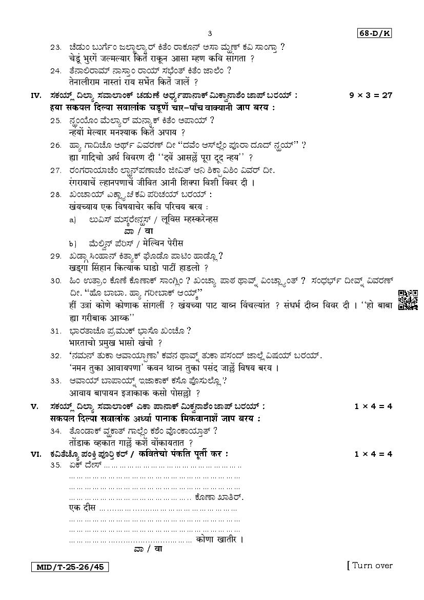 The latest available complete Konkani Third Language mid term exam question paper is as follows.