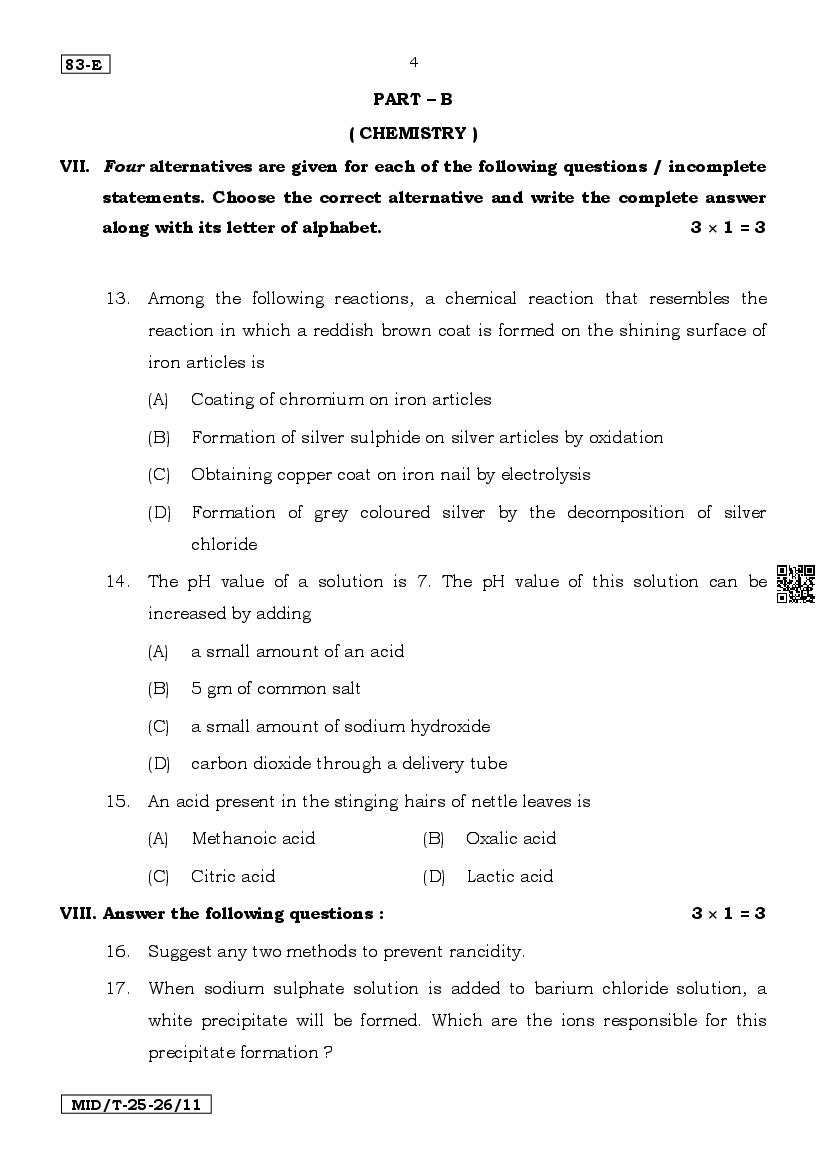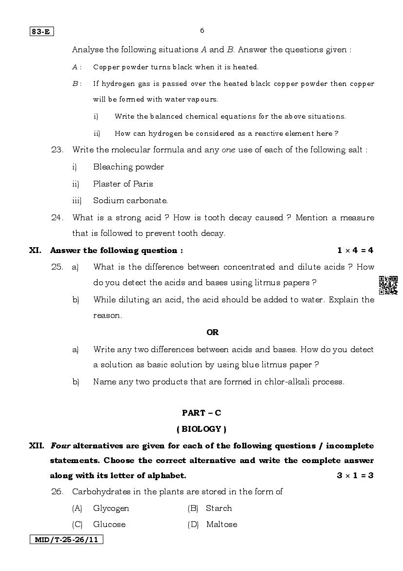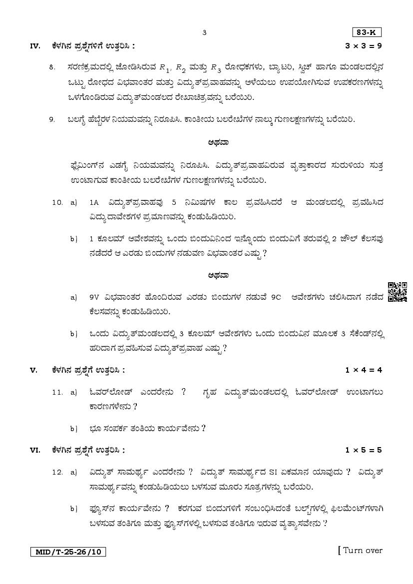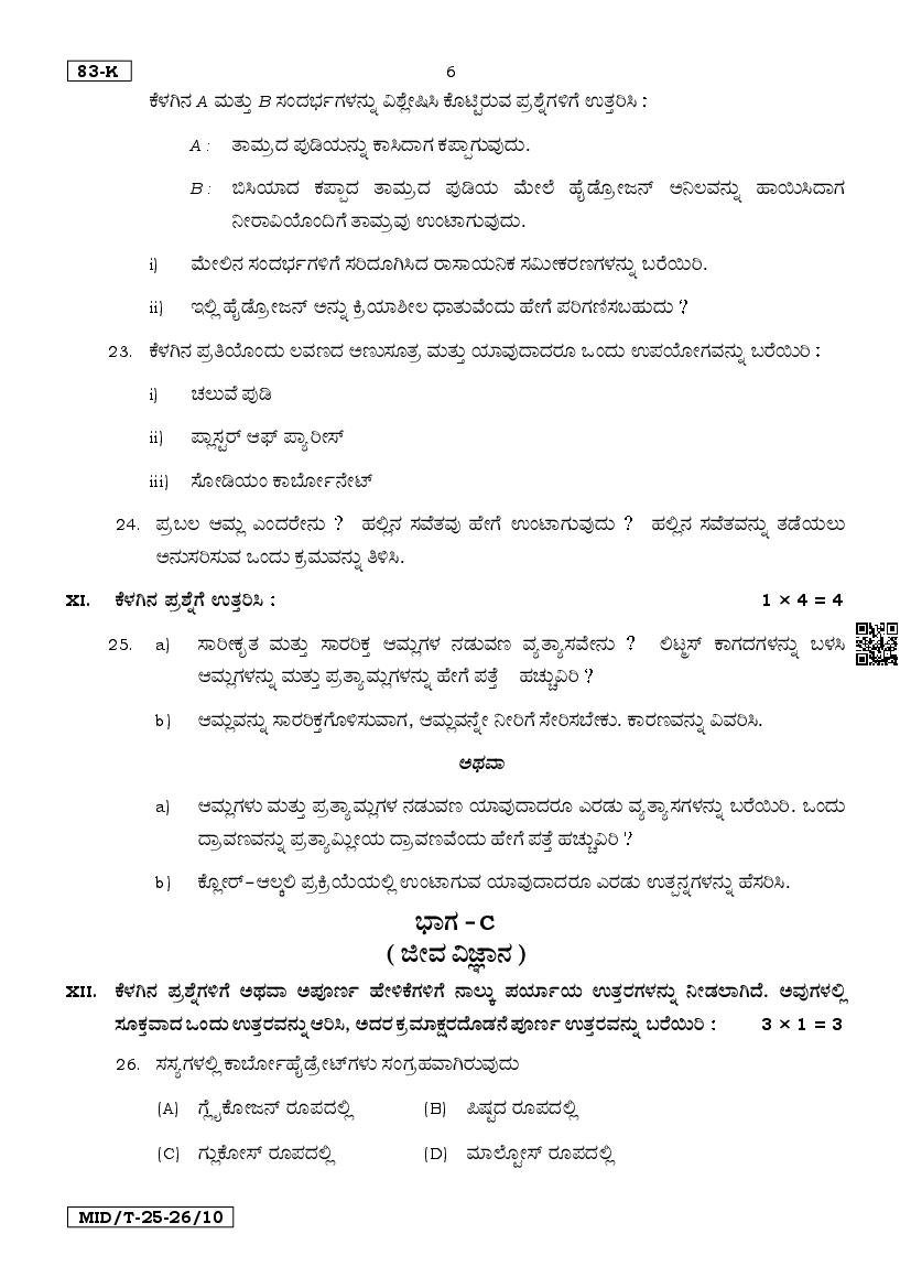Karnataka SSLC Mid Term Question Paper 2025 Science View Download
