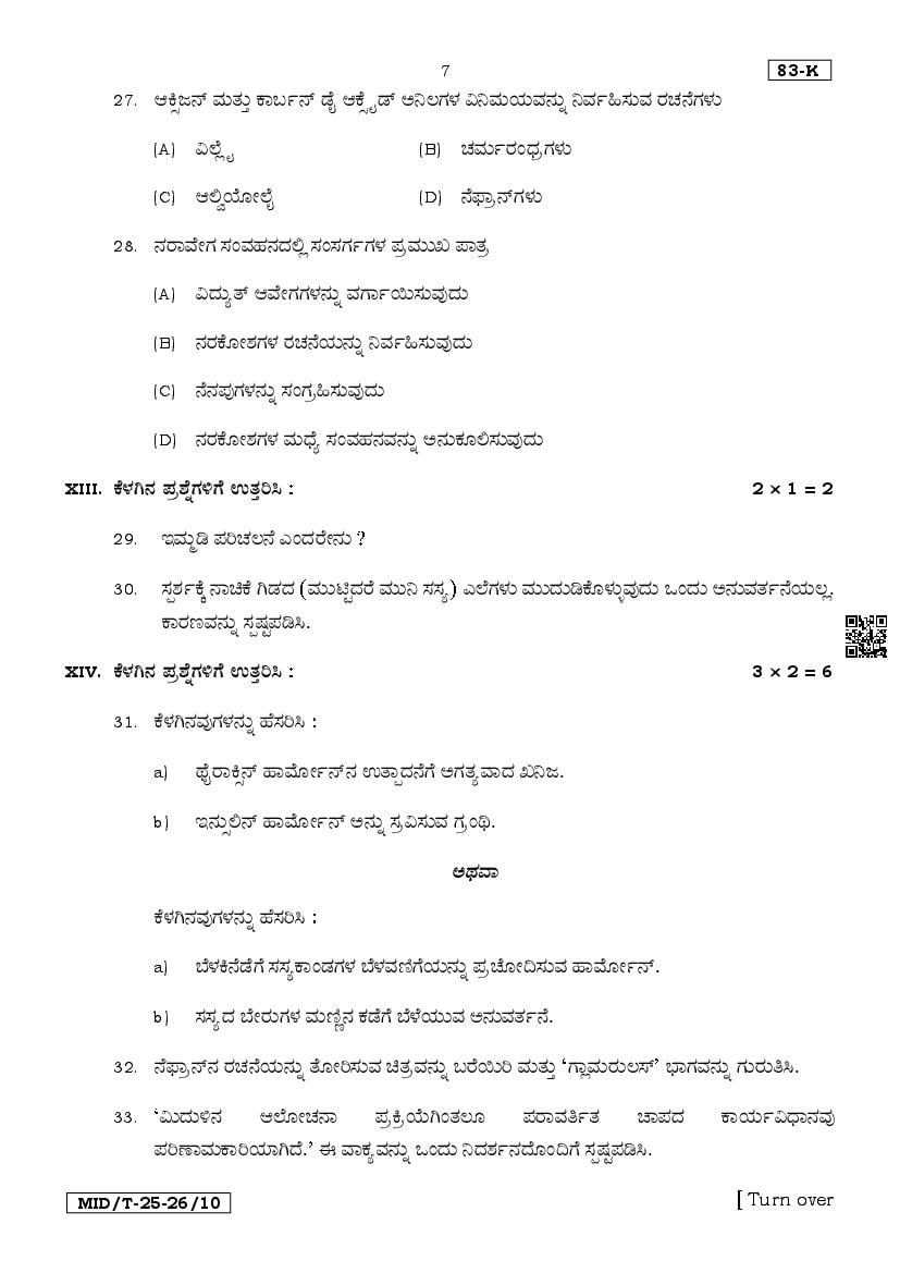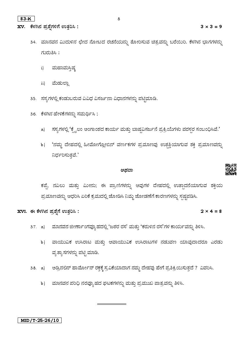 The Karnataka Board Question Paper for Science mid term exam is as follows.
