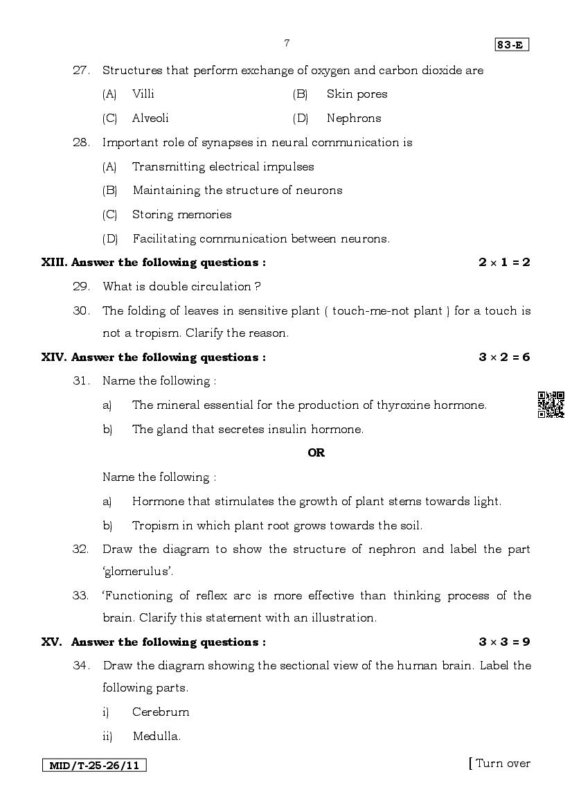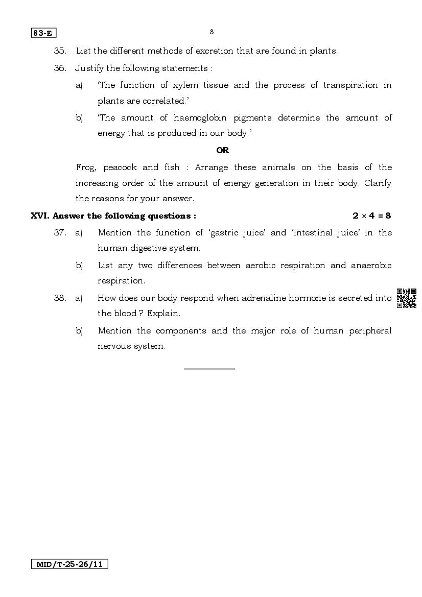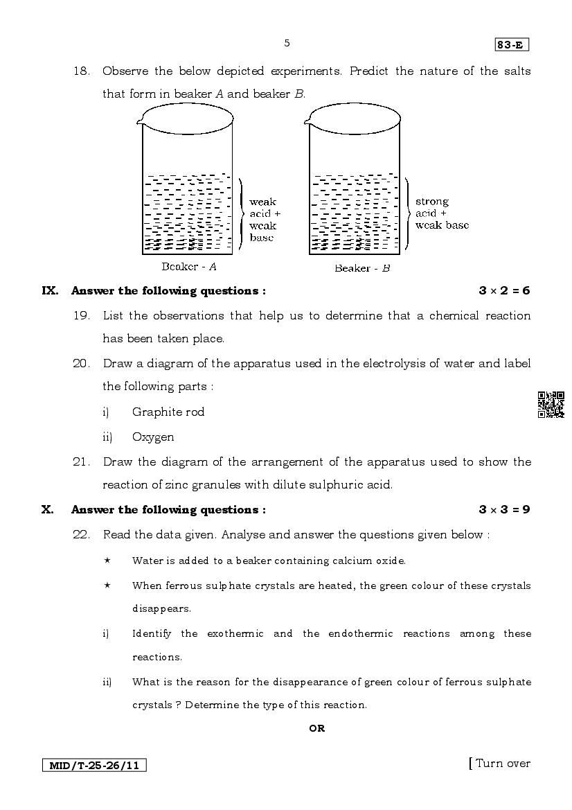 The latest available complete Science mid term exam question paper is as follows.