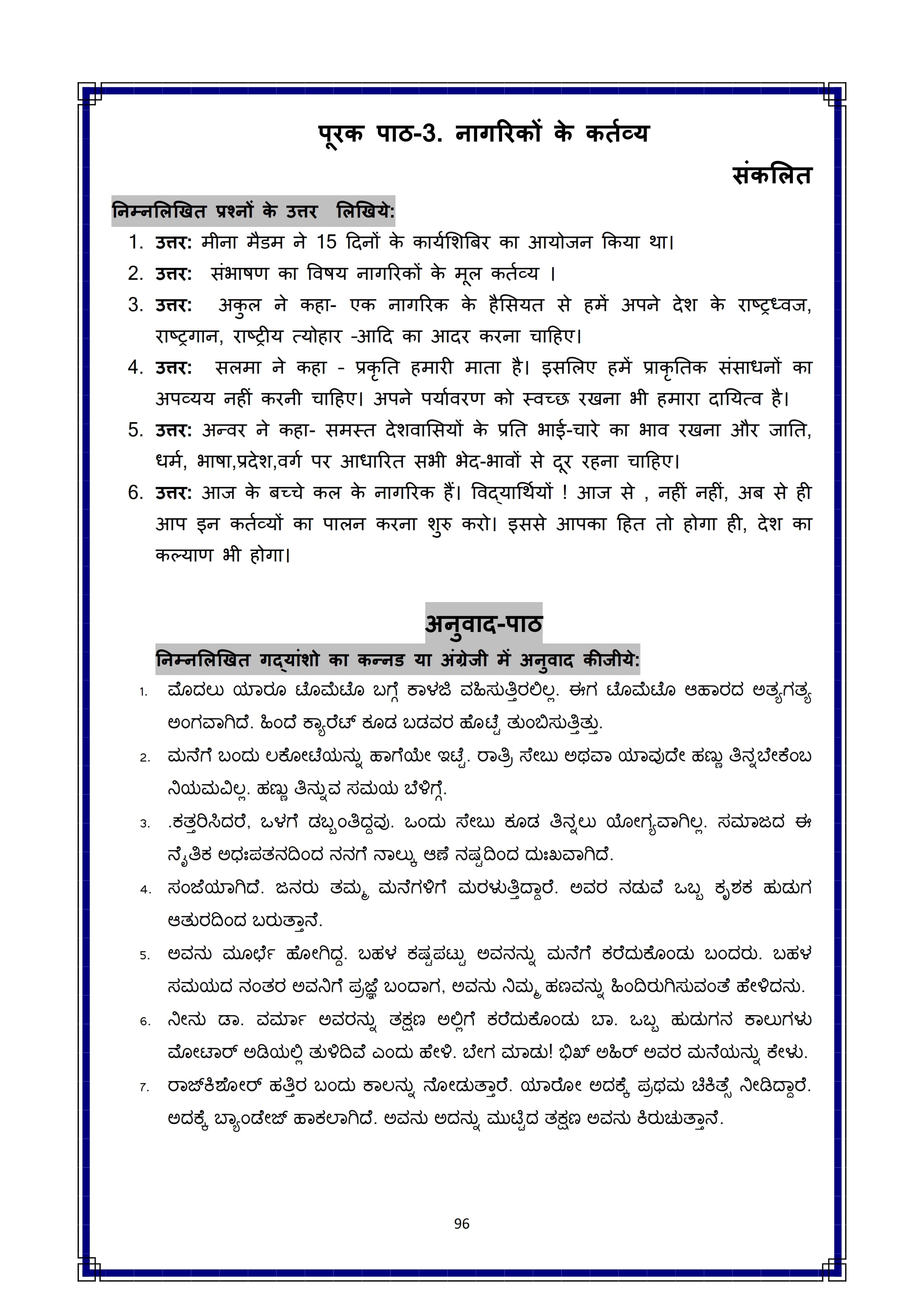 Karnataka 10th Class Hindi Question Bank PDF