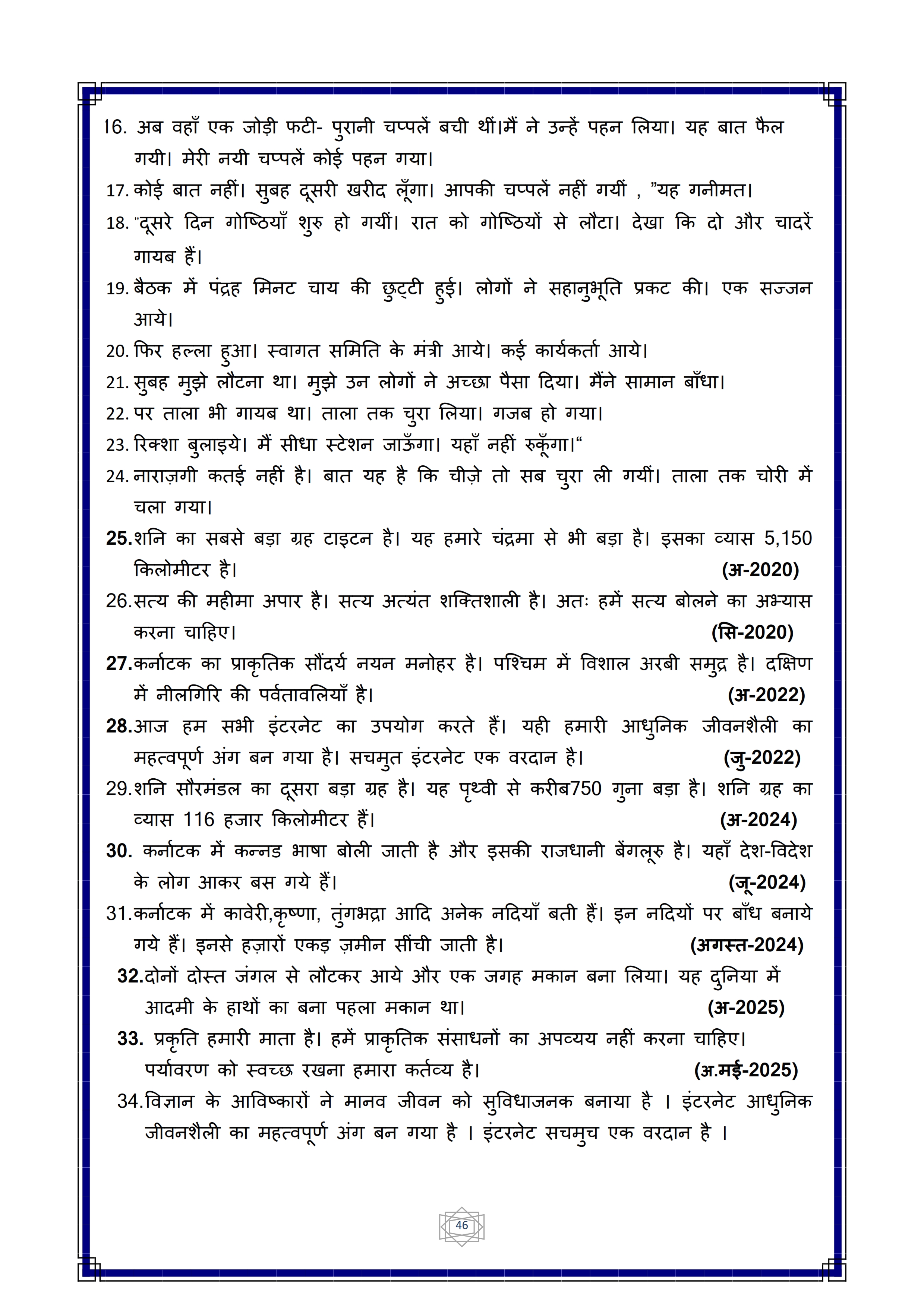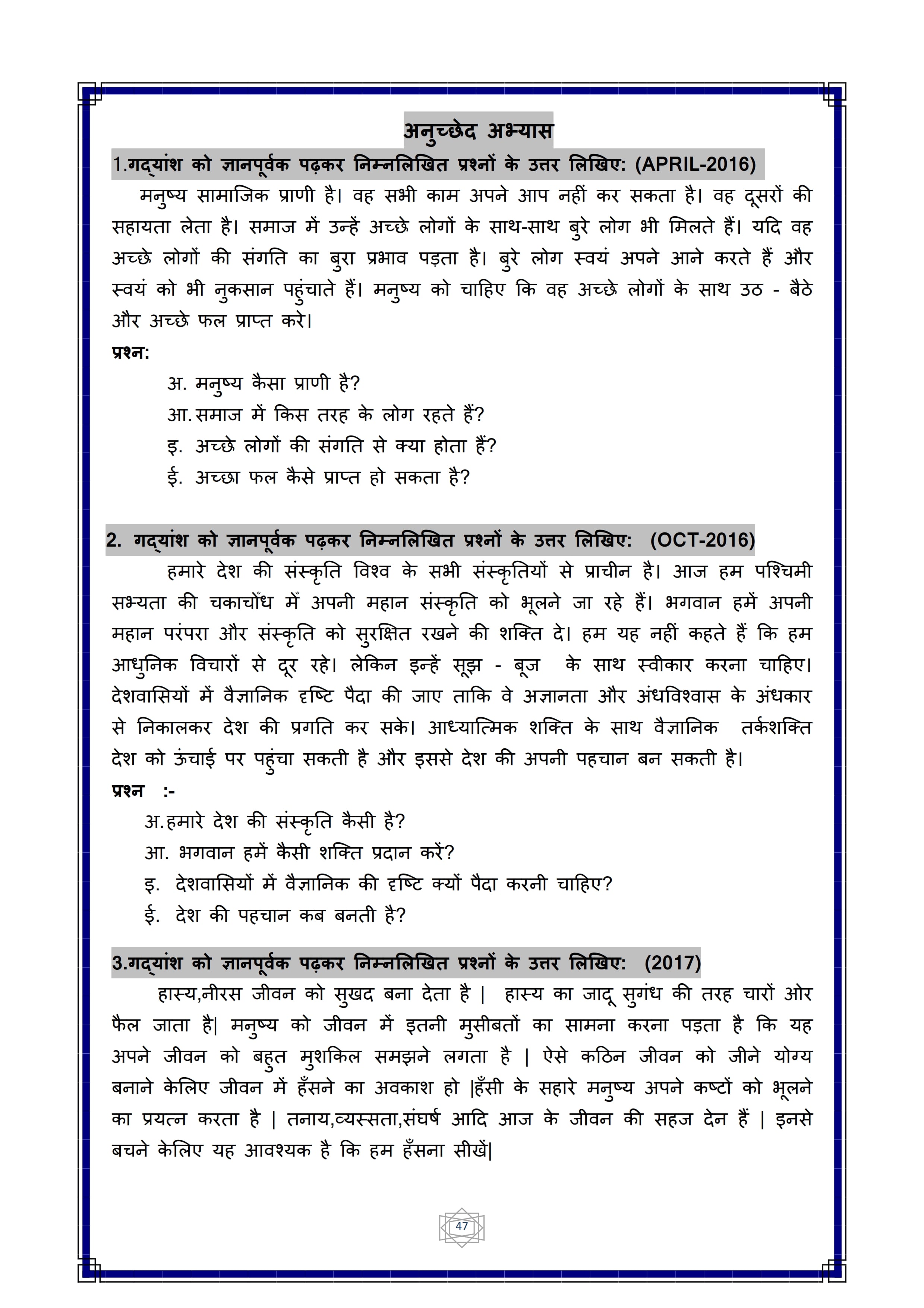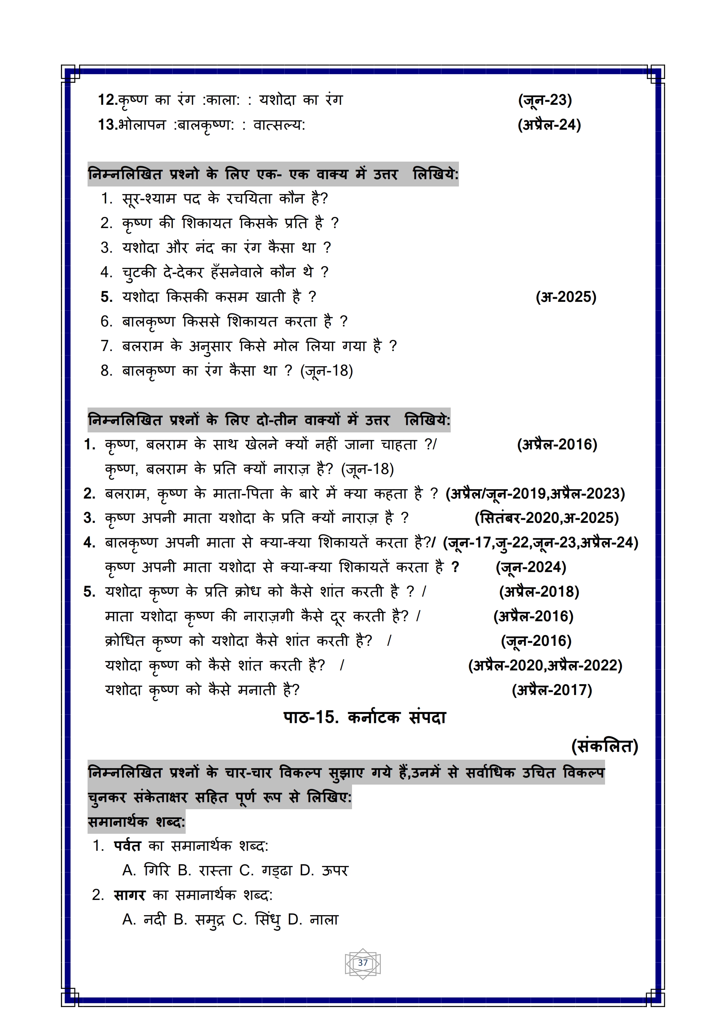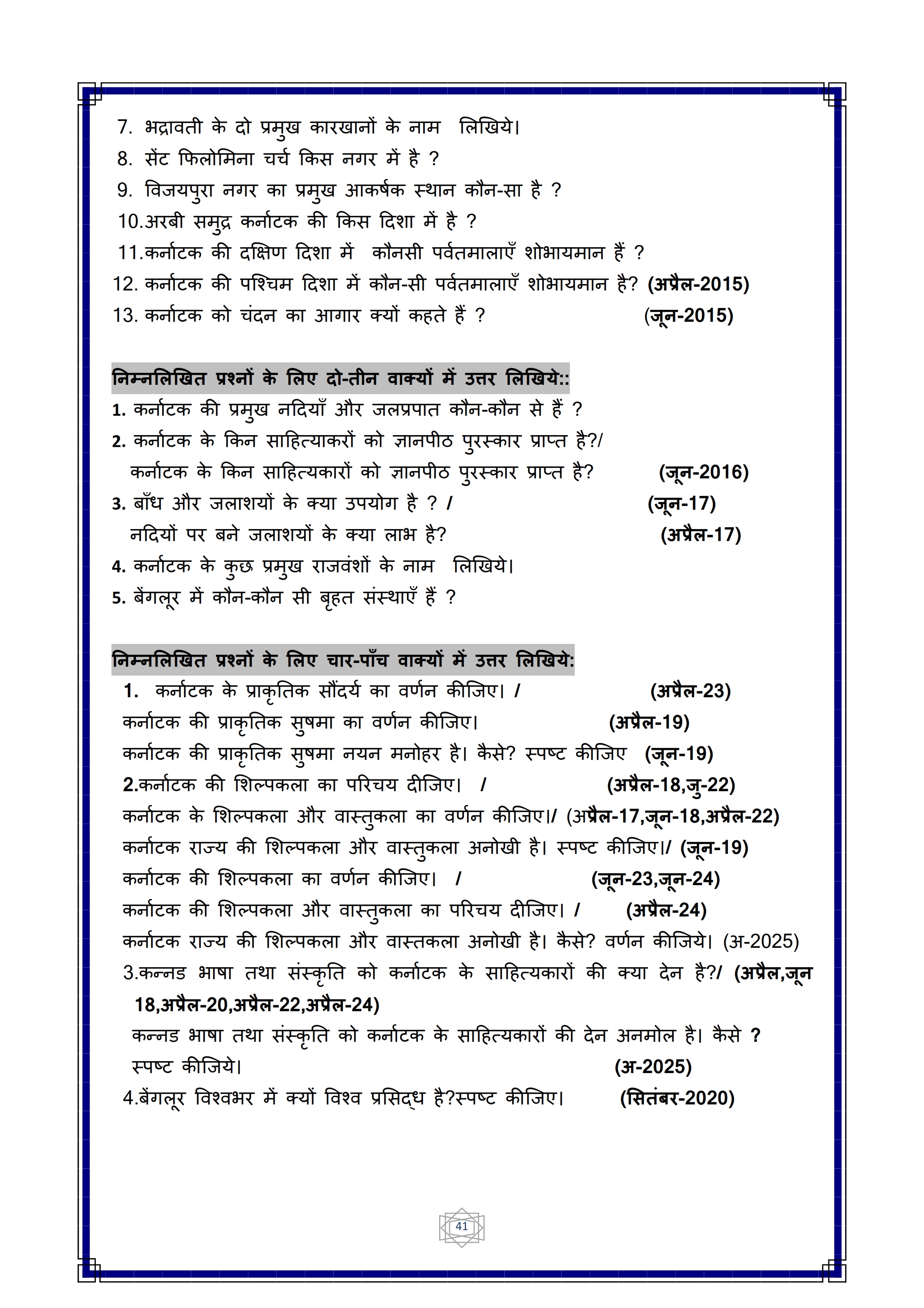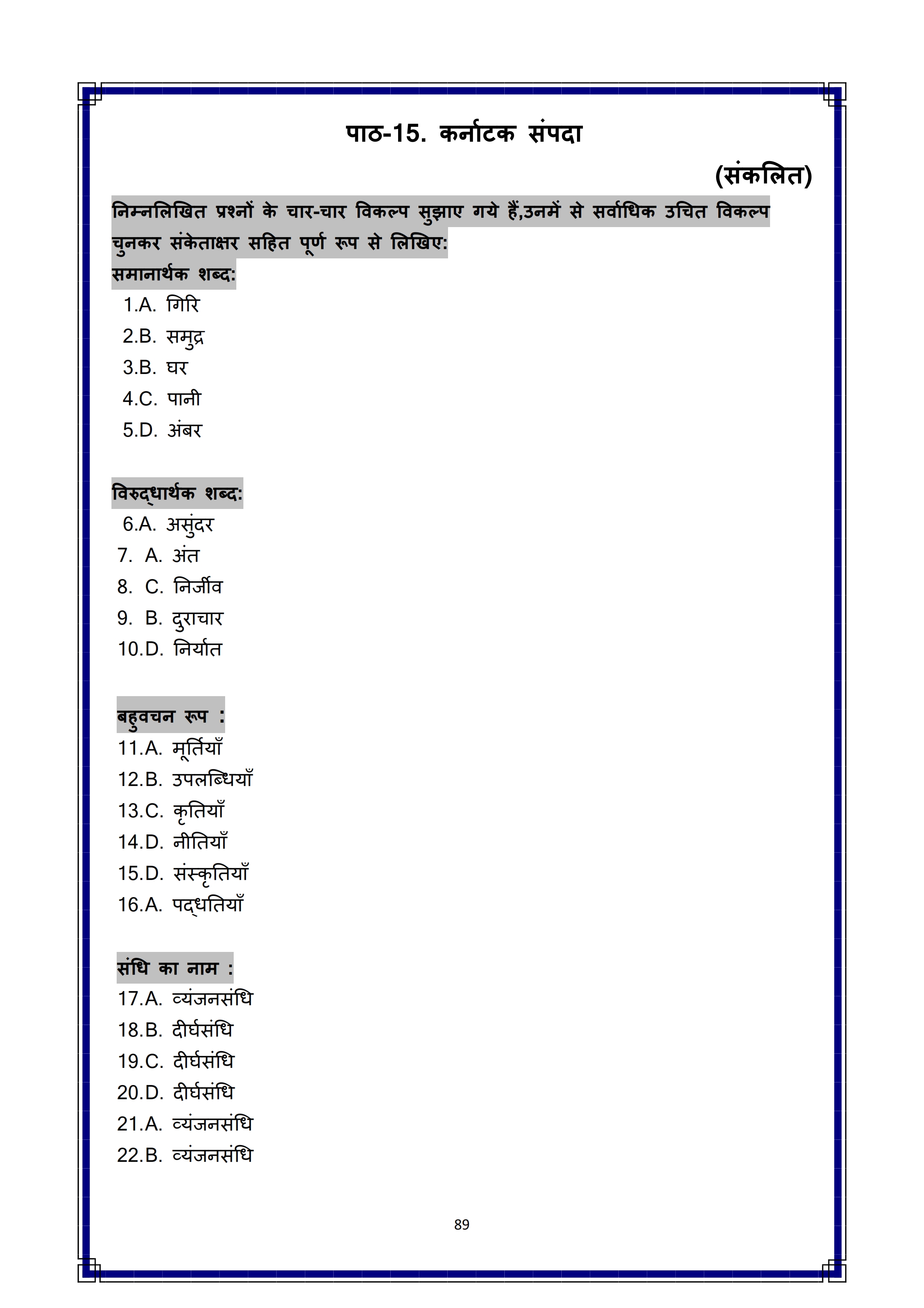 Karnataka SSLC Hindi Question Bank